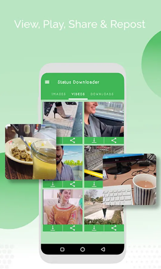 Status Saver App Download - Status Downloader downloaded images and share in HD quality, high resolution and original format share by your friends and family contacts. Just watch status and click to save, share and repost Status saver app for download images and videos.