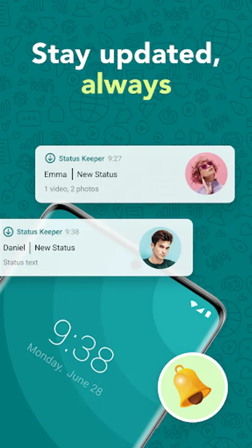 Stay updated with Status Keeper! Enjoy friends' WhatsApp statuses worry-free, even after 24 hours.
