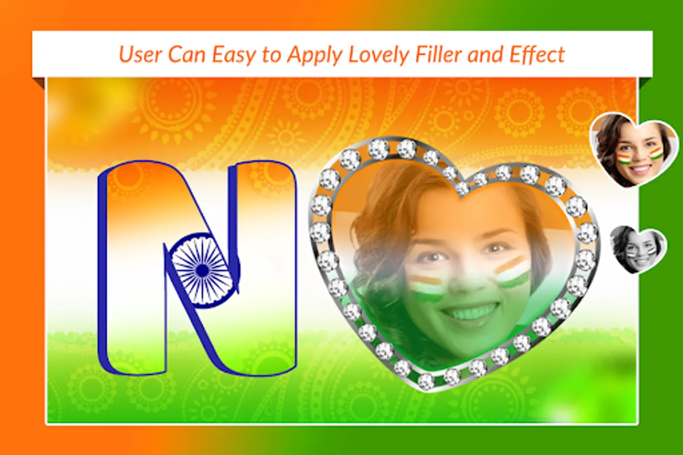 - Rotate, scale, zoom in, zoom out or drag the photo to fit the “Indian Flag Text Photo Frame" as you like!