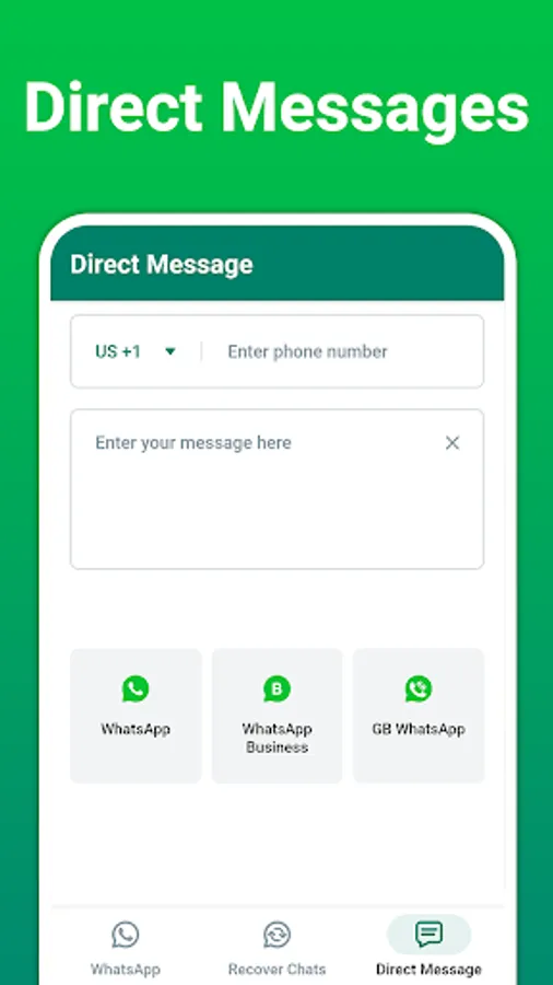 Direct Chat is a great tool for your favorite WA messenger app to send messages to any numbers that are not saved in your contacts. To start a new conversation on WA Business & WA, you must save the contact number on your mobile. But with our WA Status Downloader, you can instantly send a message to any contact without saving their contact details.