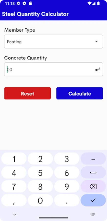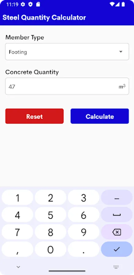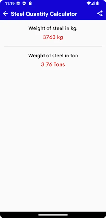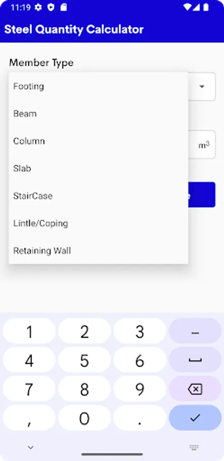 The application allows you to calculate the Steel Quantity Calculator.