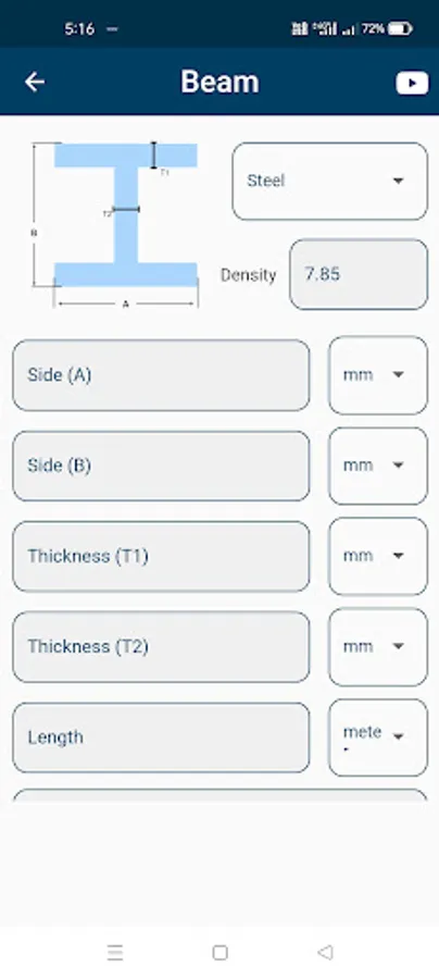 1. Wide Range of Steel Types: The app caters to various steel types, including carbon steel, stainless steel, alloy steel, and more. Users can select the specific steel grade they intend to work with, ensuring precise calculations based on material properties.