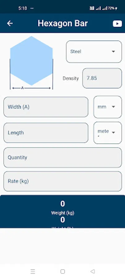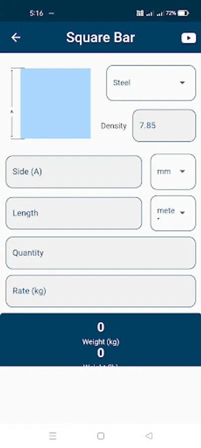 4. Real-Time Calculations: As users input dimensions and select steel types, the app instantly performs weight calculations, providing immediate results that assist in quick decision-making and planning.