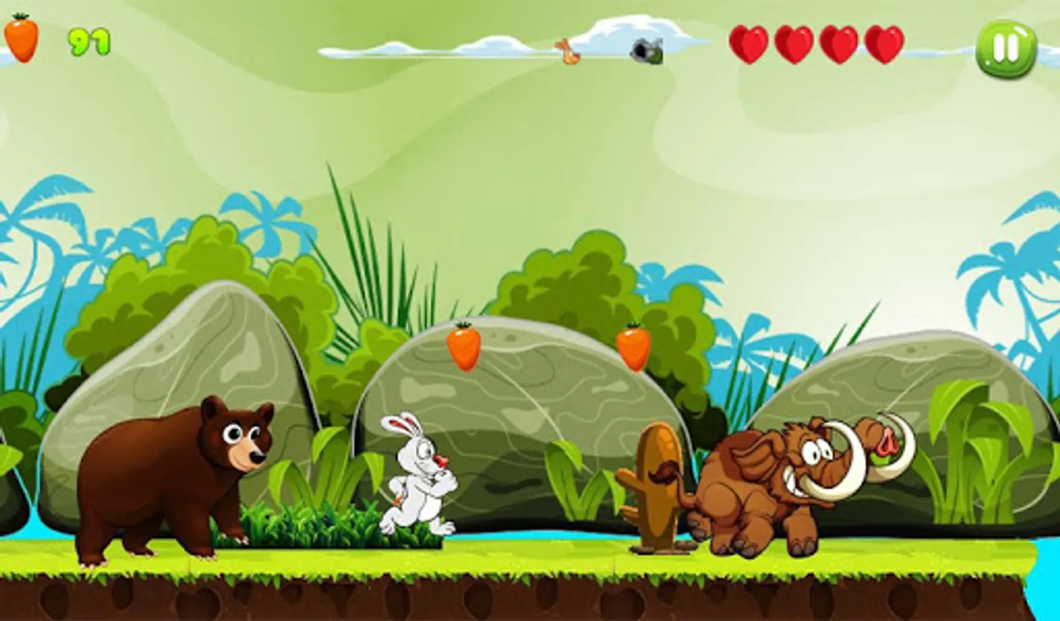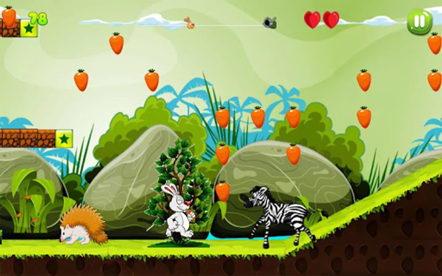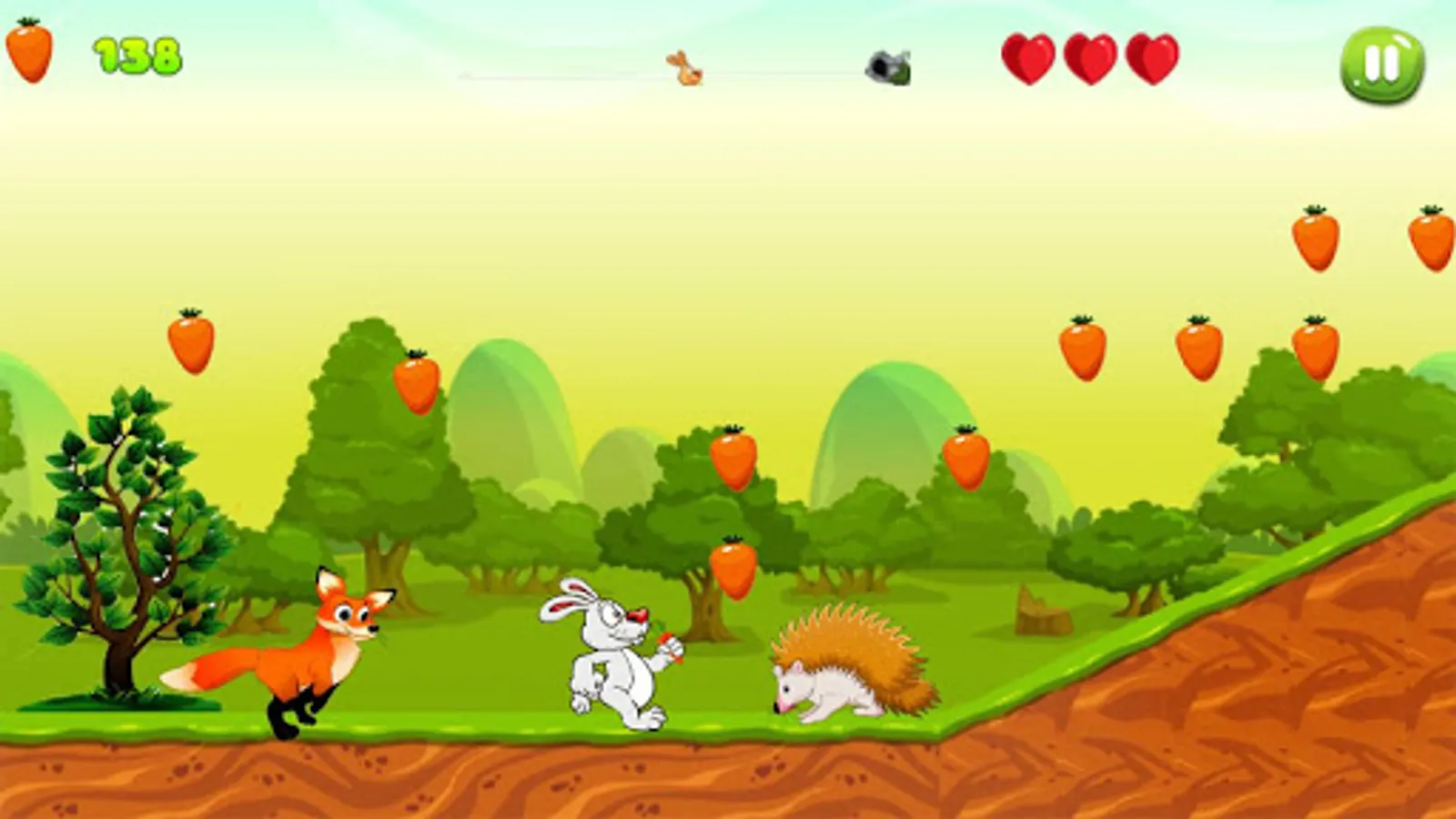 Jump and run into a jungle to find the fox, but so many animals are there to attack out the little bunny. Run and jump all the enemies and take as much as carrots you can.