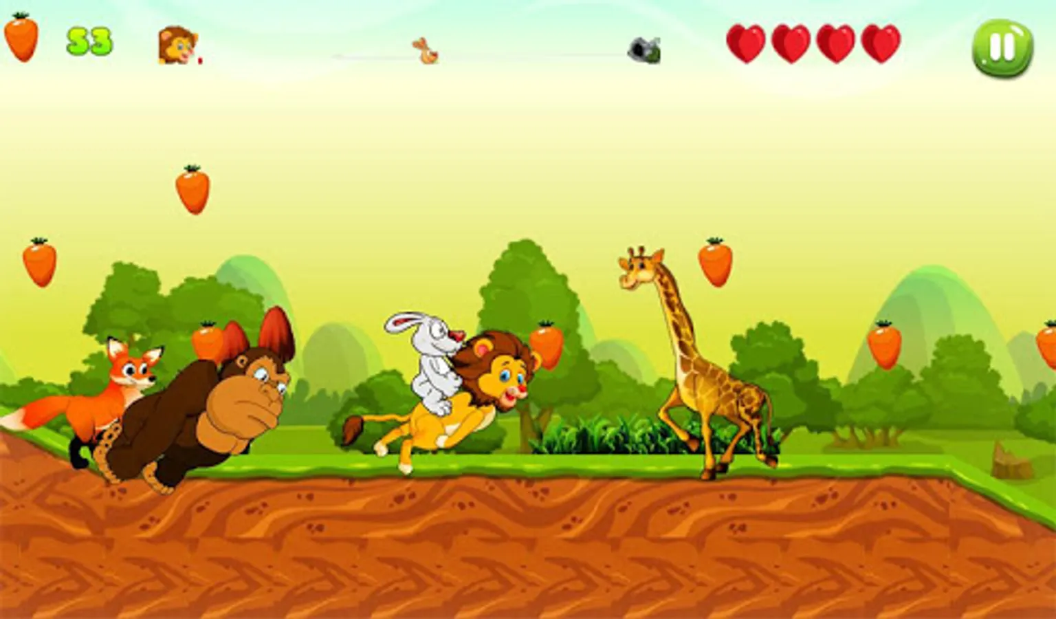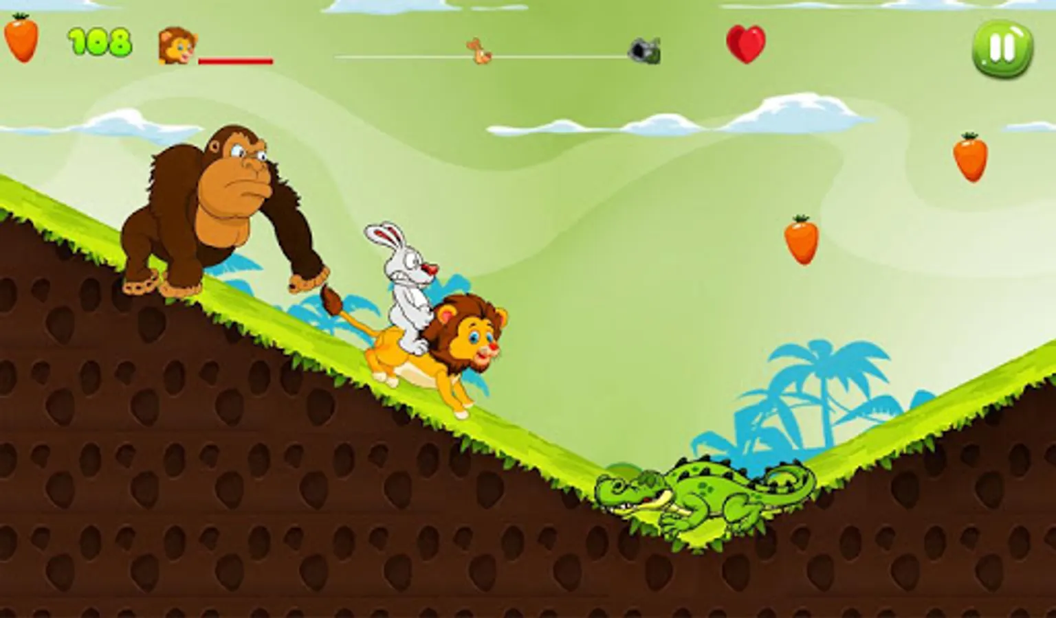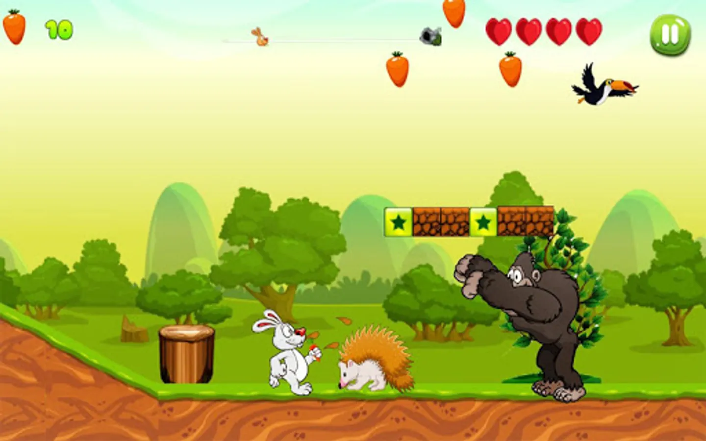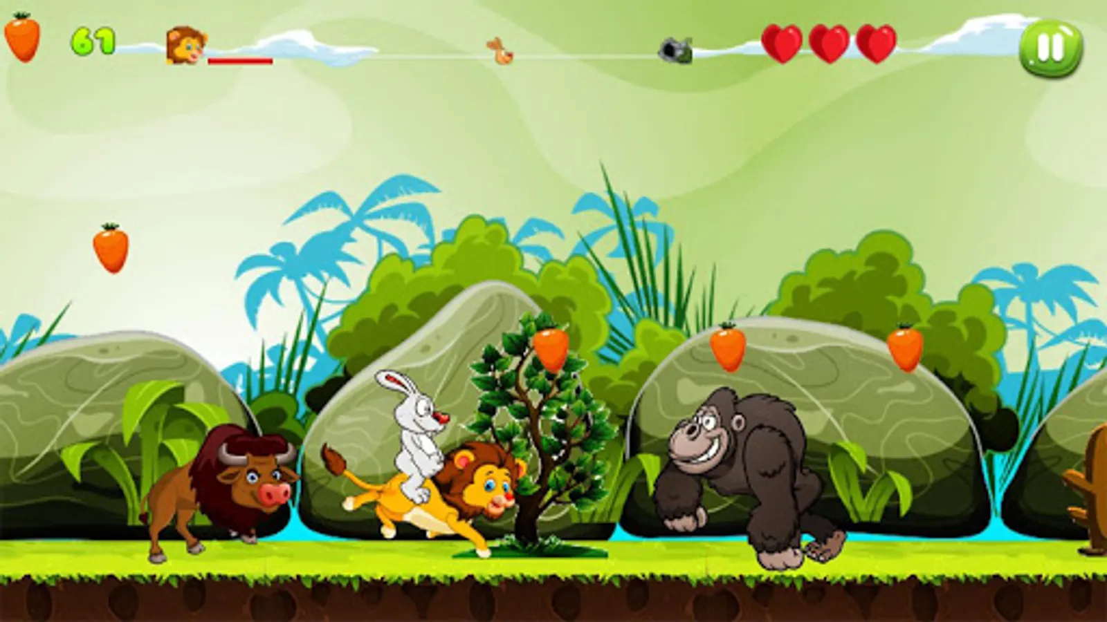 Jump and run into a jungle to find the fox, but so many animals are there to attack out the little bunny. Run and jump all the enemies and take as much as carrots you can.