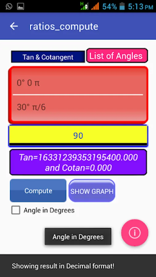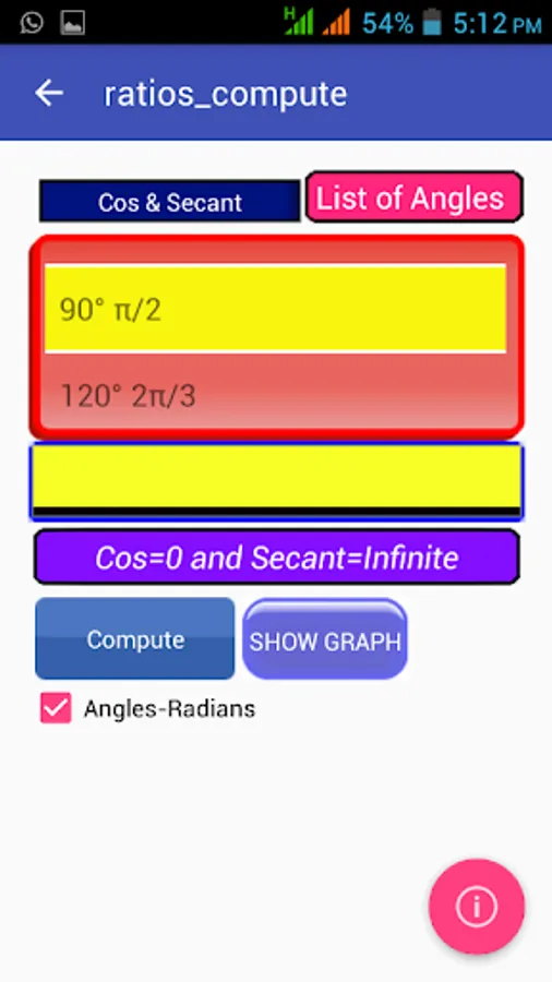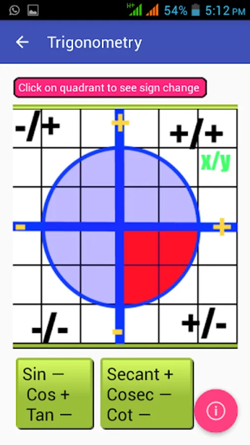An app that helps you learn and do Trigonometry calculations. Learn to convert between Degree and Radians, Find Sin, Cos, Tan, Sec, Cosec, Cot using Degree and Radian angles, learn how to draw Graphs of trigonometry functions, Calculate Hyperbolic ratios. Master Trigonometry.