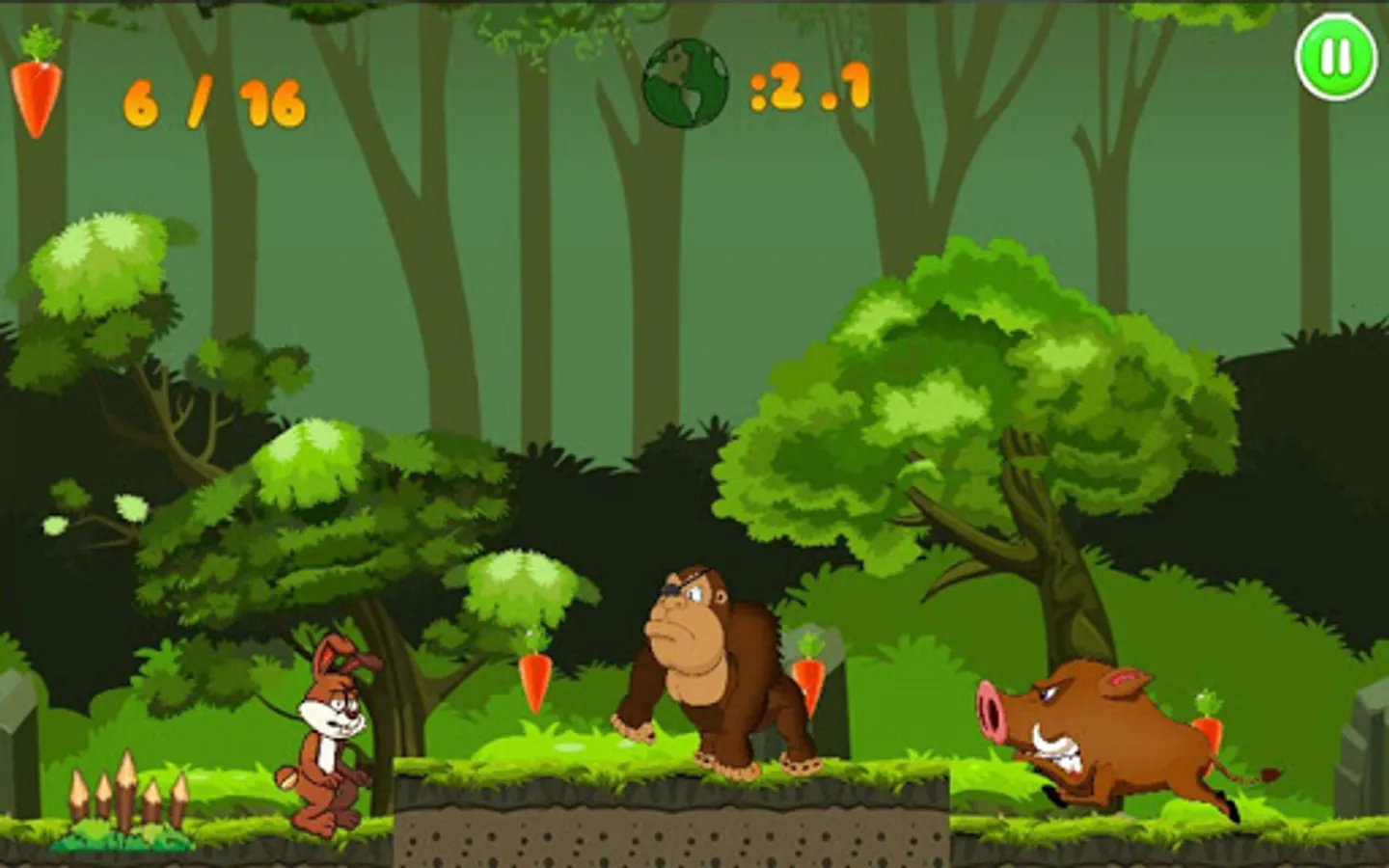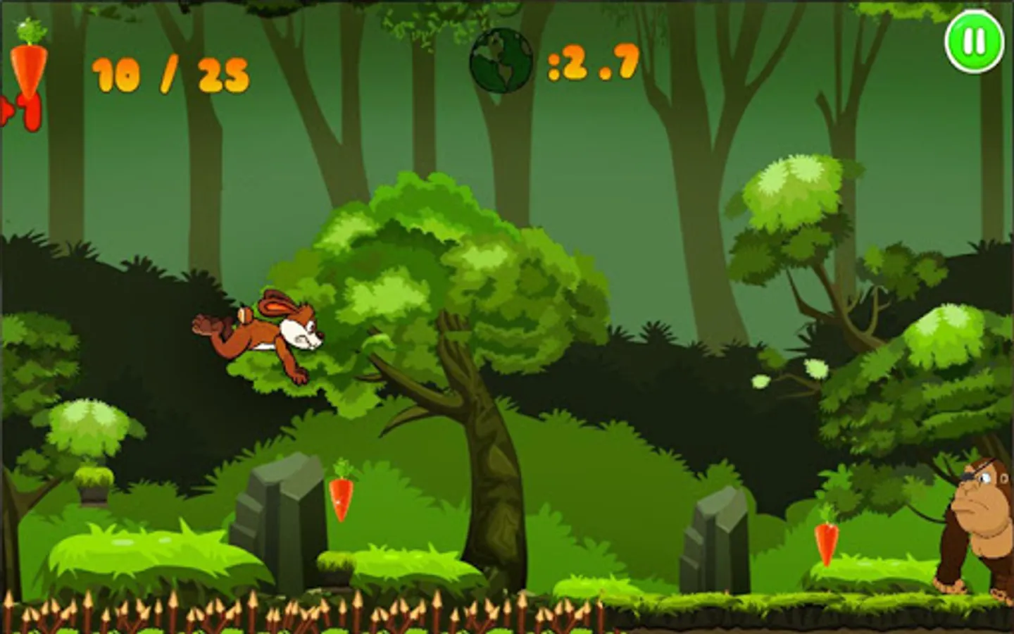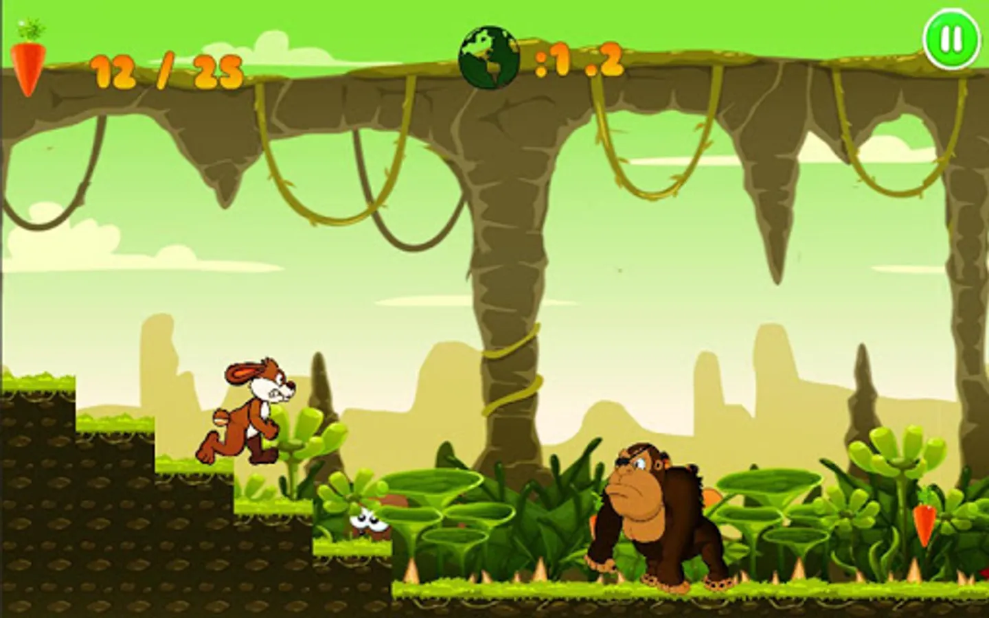 Jungle Bunny run!!! is a simple and addictive adventurous 2D run game for this Easter holidays with awesome gameplay for all including kids. Our bunny is trapped in the jungle with cruel animals and monkeys, help the little bunny to run and collect all its carrots for its kids before Easter without being caught by the animals. Just click the screen to make our bunny to jump all obstacles. This Jungle Bunny Run is the best adventure game for this Easter season with one-touch control. It has the best 2D run game with good graphics and music for kids. the Jungle Bunny Run is well designed for all people including kids to enjoy this Easter holidays.