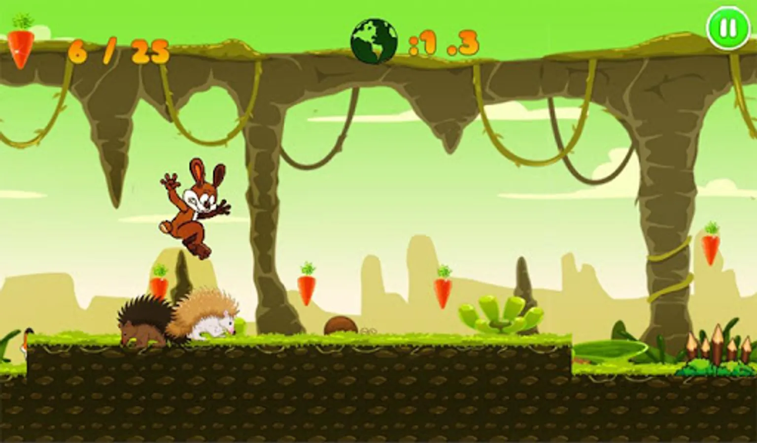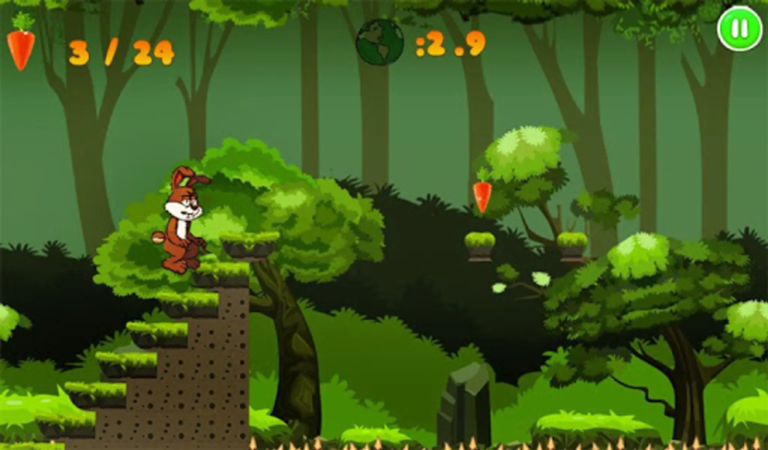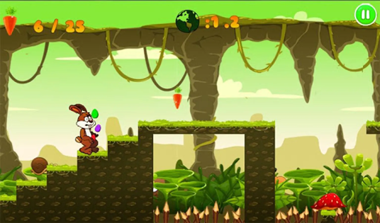 Jungle Bunny run!!! is a simple and addictive adventurous 2D run game for this Easter holidays with awesome gameplay for all including kids. Our bunny is trapped in the jungle with cruel animals and monkeys, help the little bunny to run and collect all its carrots for its kids before Easter without being caught by the animals. Just click the screen to make our bunny to jump all obstacles. This Jungle Bunny Run is the best adventure game for this Easter season with one-touch control. It has the best 2D run game with good graphics and music for kids. the Jungle Bunny Run is well designed for all people including kids to enjoy this Easter holidays.