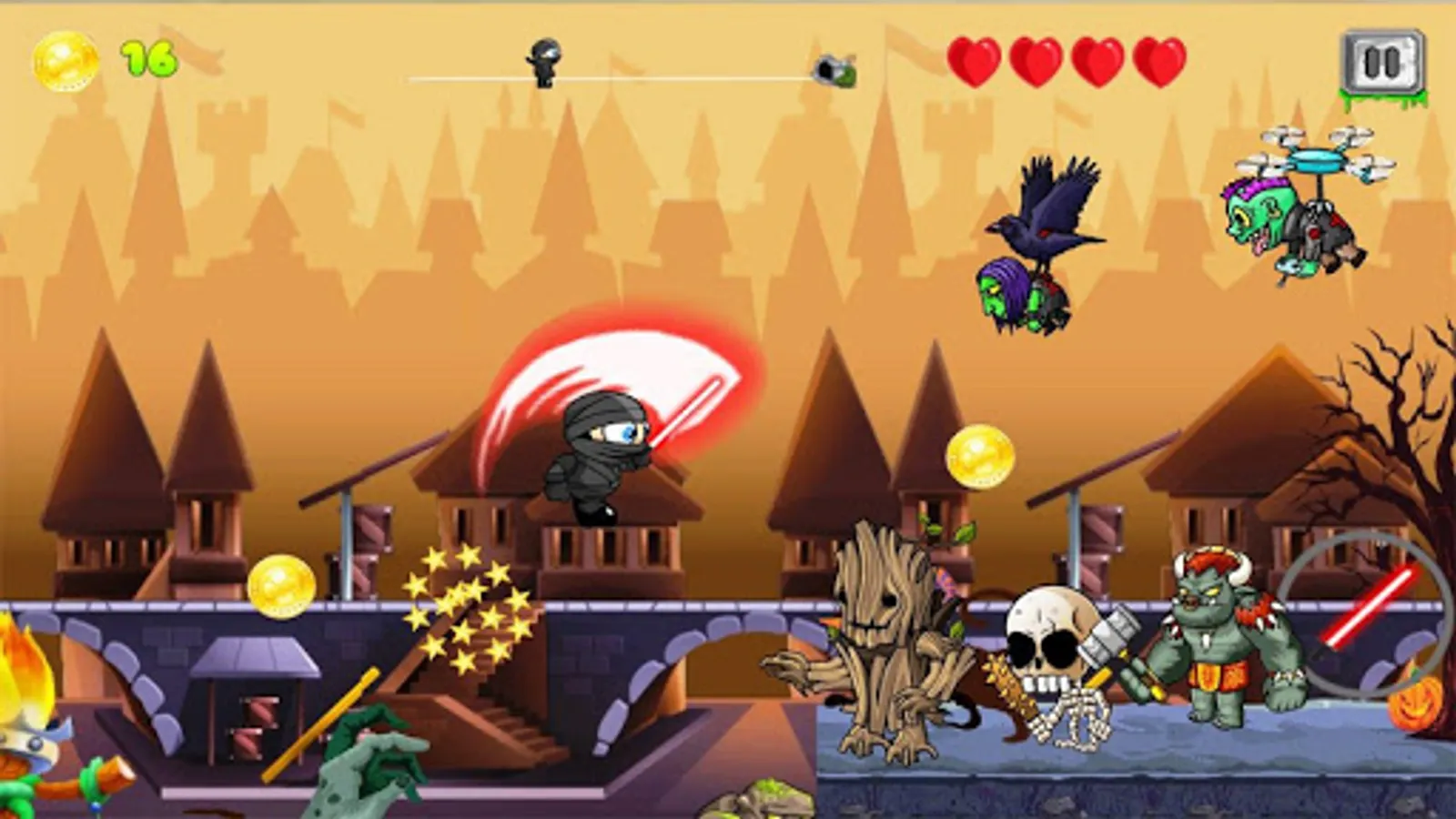 In its pacing and structure, Little Ninja Run : An Adventure Survival has 3 different worlds (Halloween, zombie, orcs) with 18 different levels. Little Ninja Run : An Adventure Survival has a ninja warrior with 2 swords to fight with zombies and all other enemies.