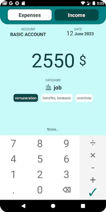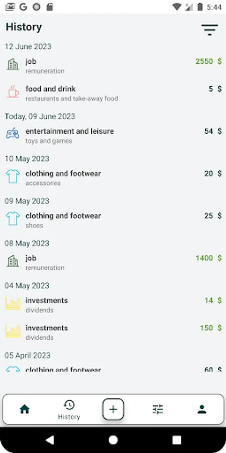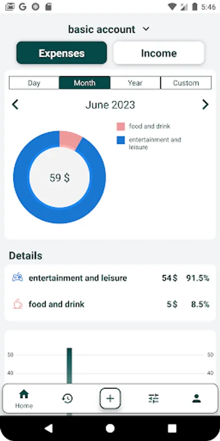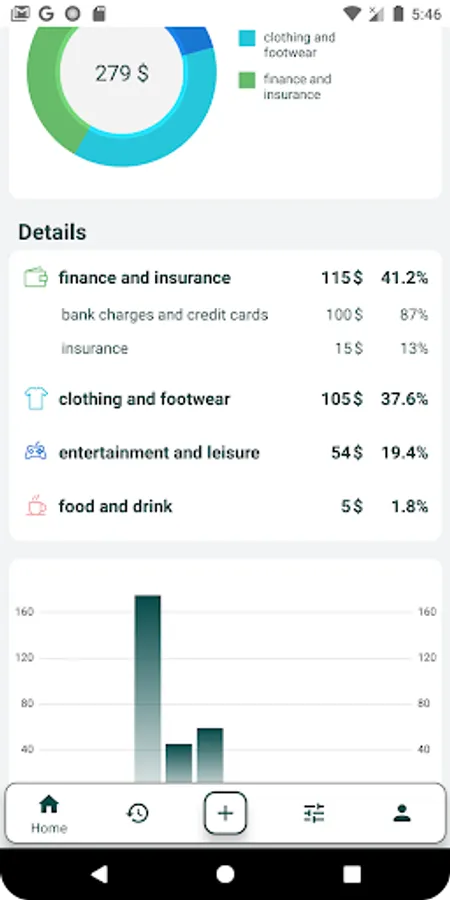 The app is used to manage the household budget. With a simple and intuitive interface, you can easily add transactions and control your finances. The app allows you to summarise your expenses on a daily, monthly, annual or any other basis. The data is presented by means of a pie chart and a bar chart. The user can review the history of transactions and add notes. The user can freely configure expense and income categories, specify their subcategory, icon and colour. It is possible to synchronise data between devices using the same Google account and to restore data in the event of loss of a device. The application is under development and new features, such as export to xlsx, will be added.