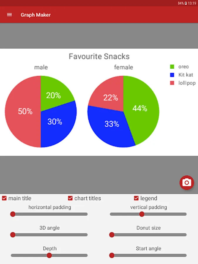 • Save pie charts to the image gallery to use in your own work.