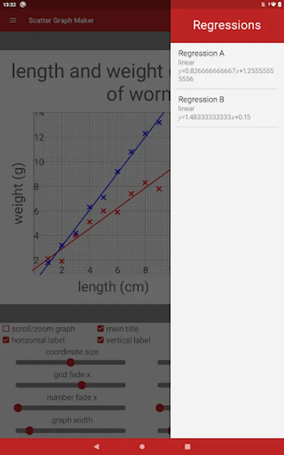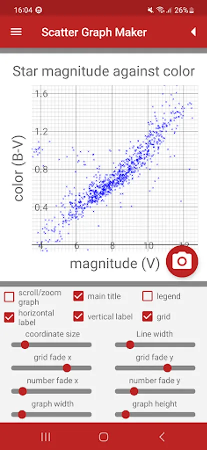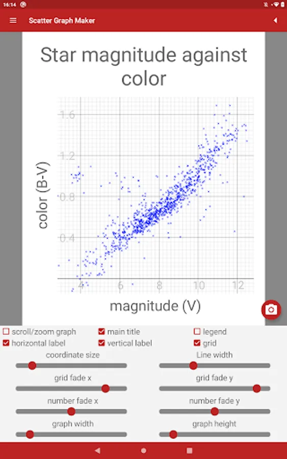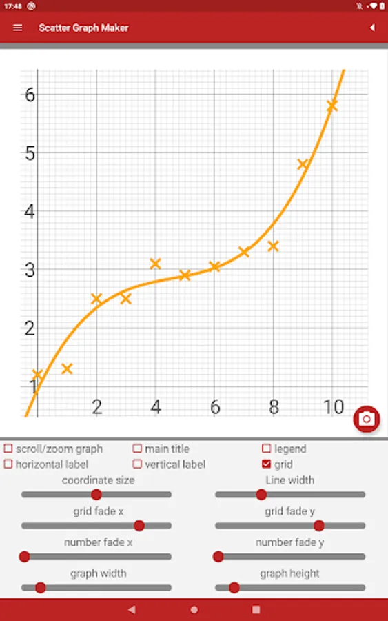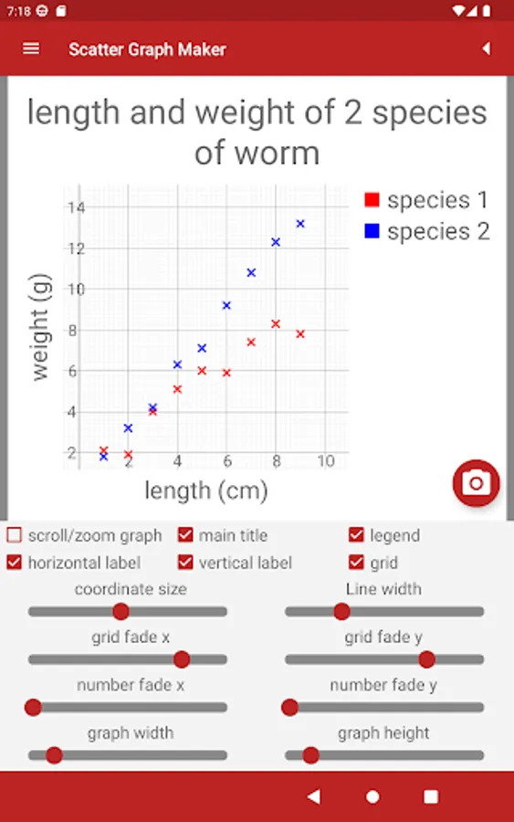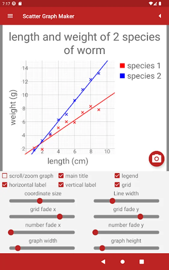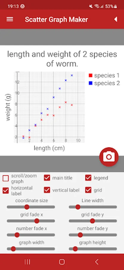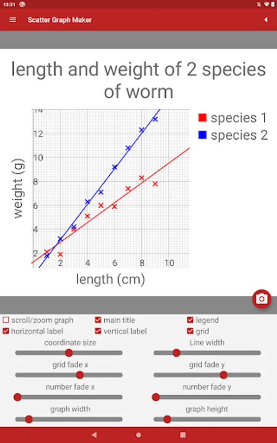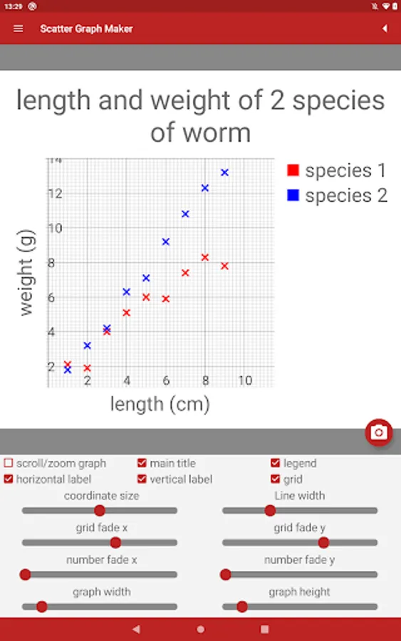 • Save scatter graphs to the phone's memory to use in your own work.