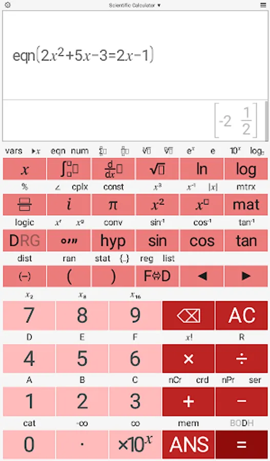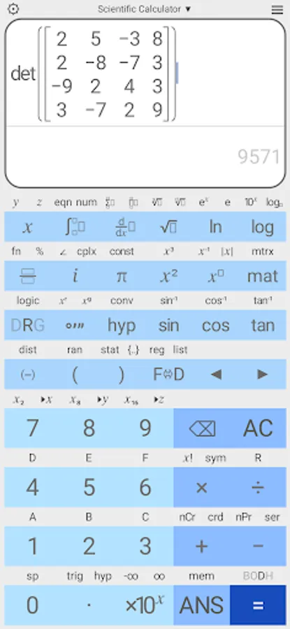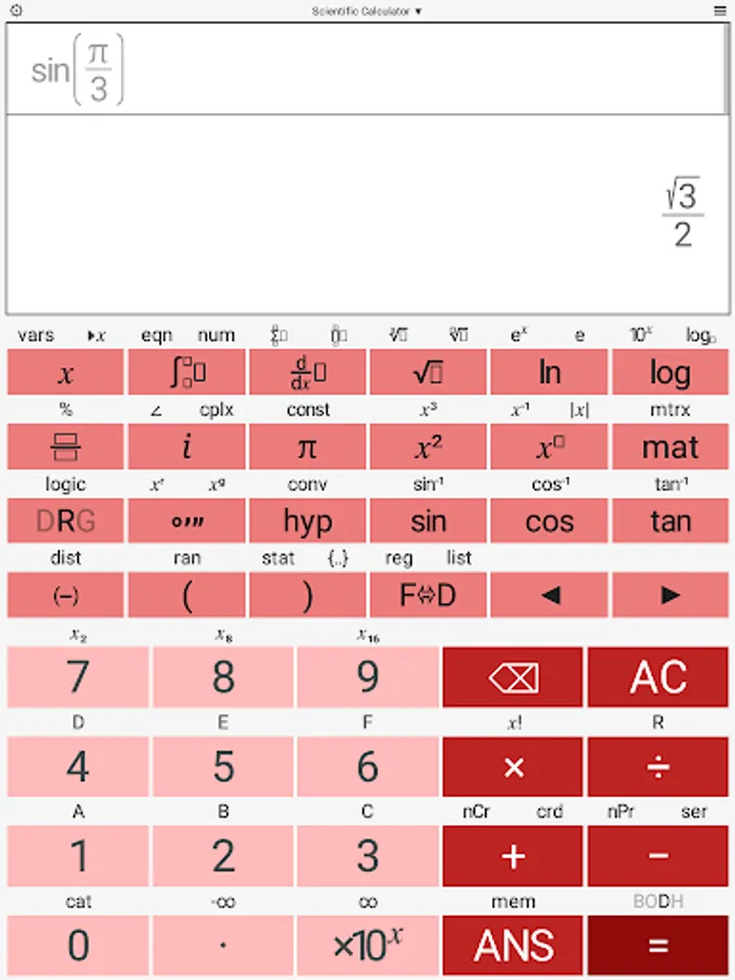 This scientific calculator offers a number of useful features allowing you to carry out advanced calculations. Its simple and intuitive design makes it a pleasure to use. The calculator has all the functions that would be expected of a scientific calculator and a number of more advanced features too, including complex numbers and matrices.