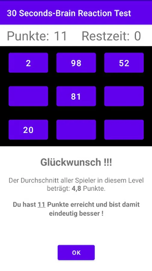 The average is calculated from the last 10 rounds of each level and saved in a high score list.