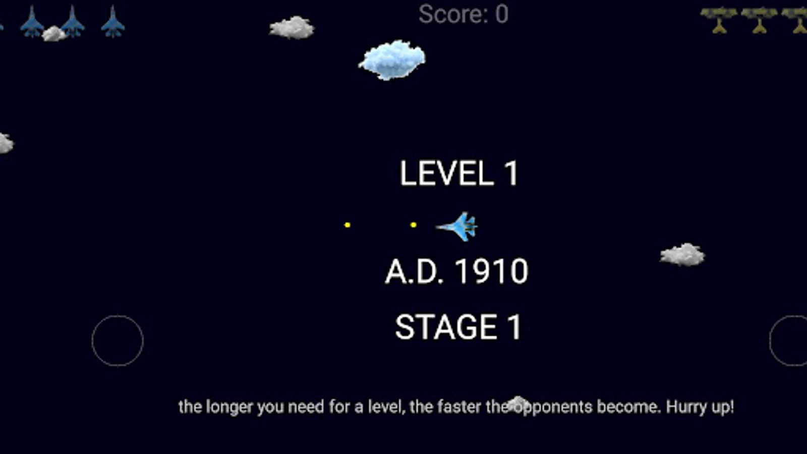 Fly through 6 different time zones of war technology and destroy all enemies including bosses.