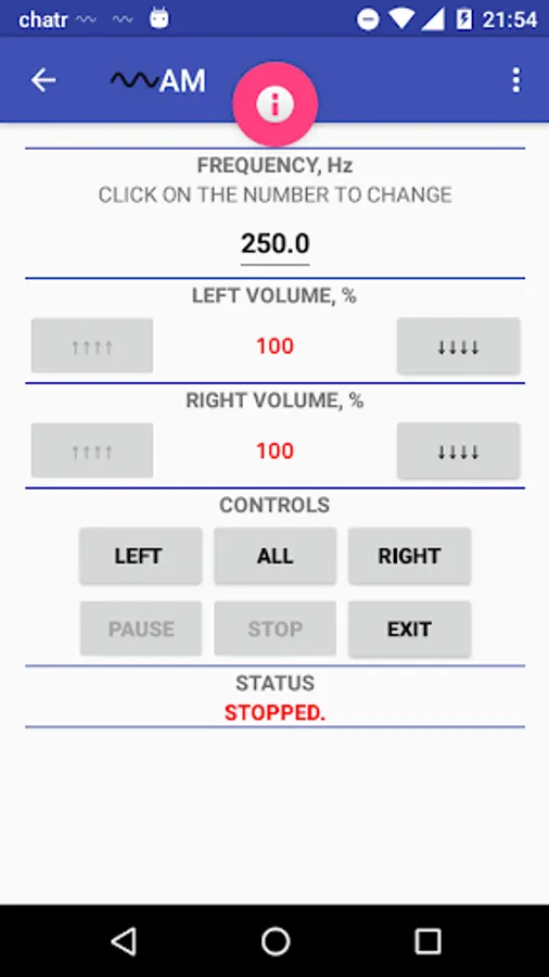 Audiometer is an application which plays a pure sine audio signal with the the input frequency and volumes. This is not a medical application and is for entertainment purposes only.