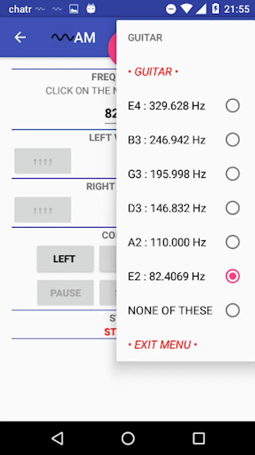 Audiometer can be used to tune a guitar and any other musical instrument for people who prefer to tune their instruments manually. Non standard tune ups can easily be performed but a standard tune up of E4, B3, G3, D3, A2, E2 is even easier as there are menu options which allow for these standard tones to be played with a single click.