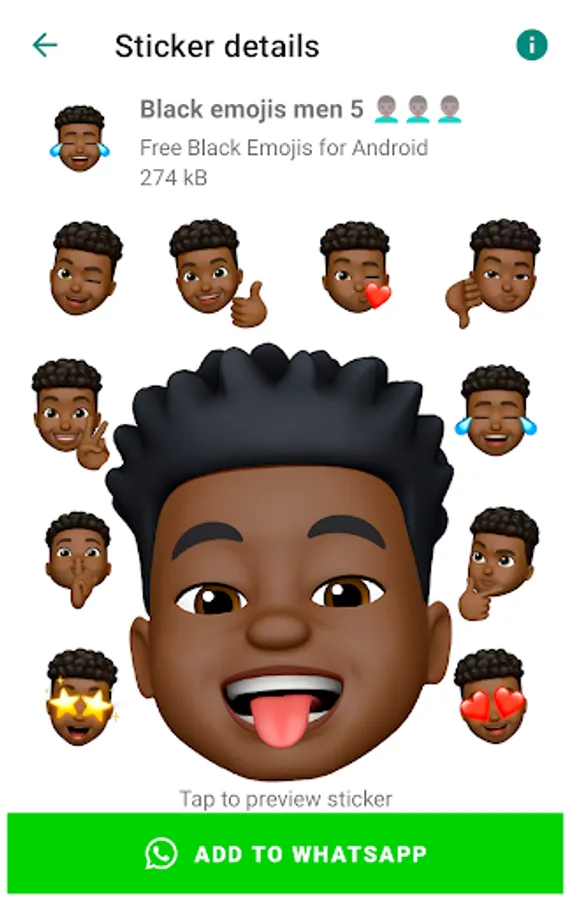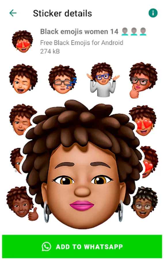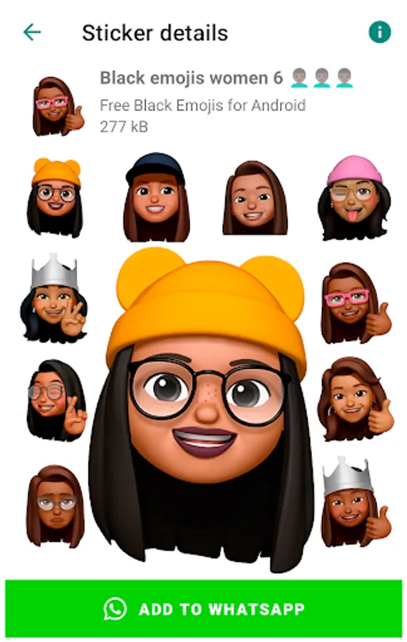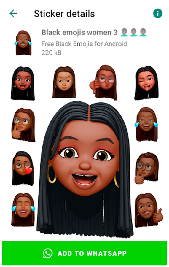 - A lot of stickers with African American black emojis like Memoji Apple stickers for WhatsApp.