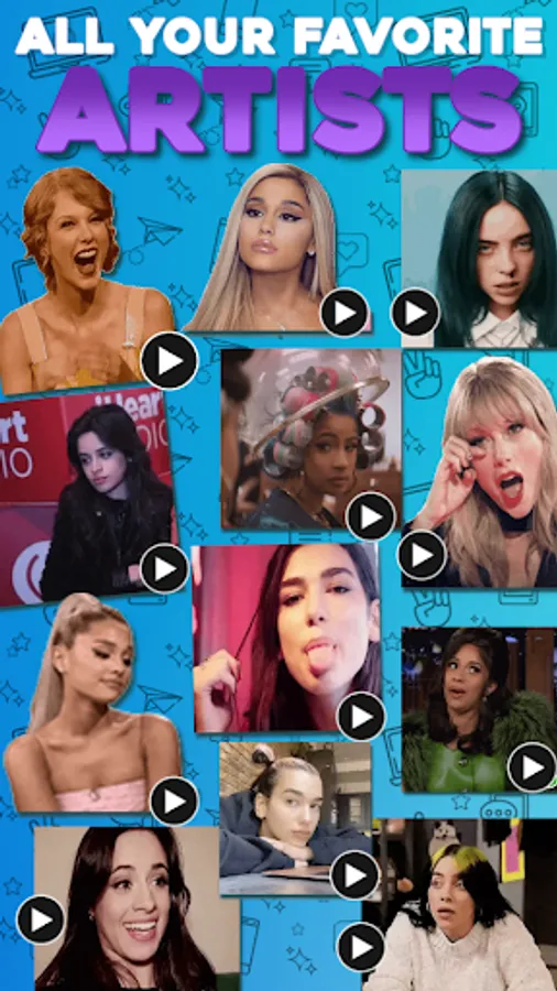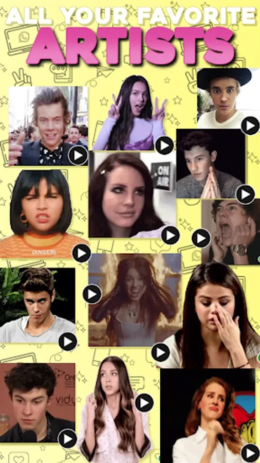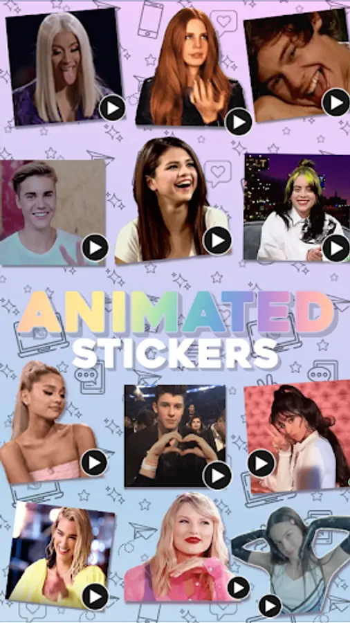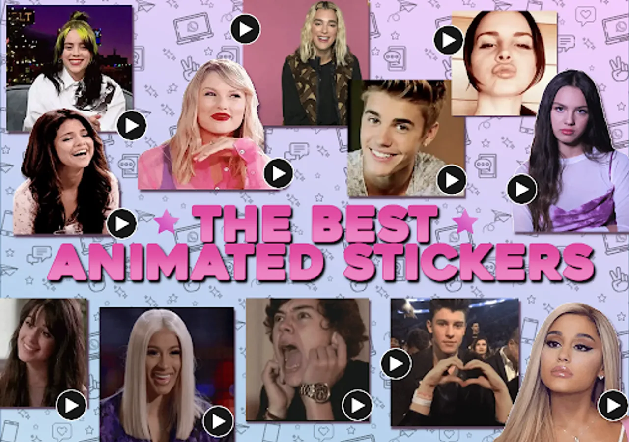 The best animated WASticker of famous singers for whatsapp. We have Stickers of: Ariana Grande, Billie Eillish, Camila Cabello, Cardy B, Dua Lipa, Harry Styles, Justin Bieber, Lana del Rey, Olivia Rodrigo, Selena Gomez, Shawn Mendes, Taylor Swift and many more!