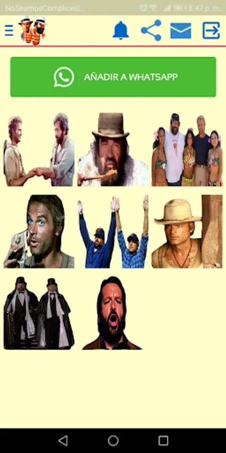 Bud Spencer and Terence Hill stickers. Let's continue enjoying them as we did with their films, let them be the ones who make our conversations fun. With much respect and affection we smiled as we did watching "They called him Trinidad", "Two fists against Rio", "Two super policemen in Miami", "Pairs and nones", "Banana Joe", "Don Camilo" and many other greats classics.