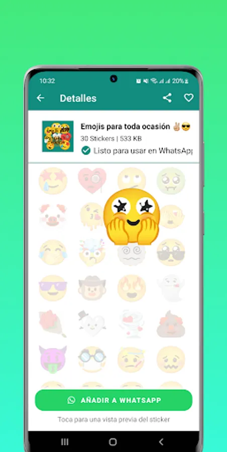 Hundreds of new Emojis Stickers for WhatsApp. Make your conversations with friends and family more fun. Just let go of the old little emojis that you were using and try using our emoji stickers, you will simply fall in love with them.