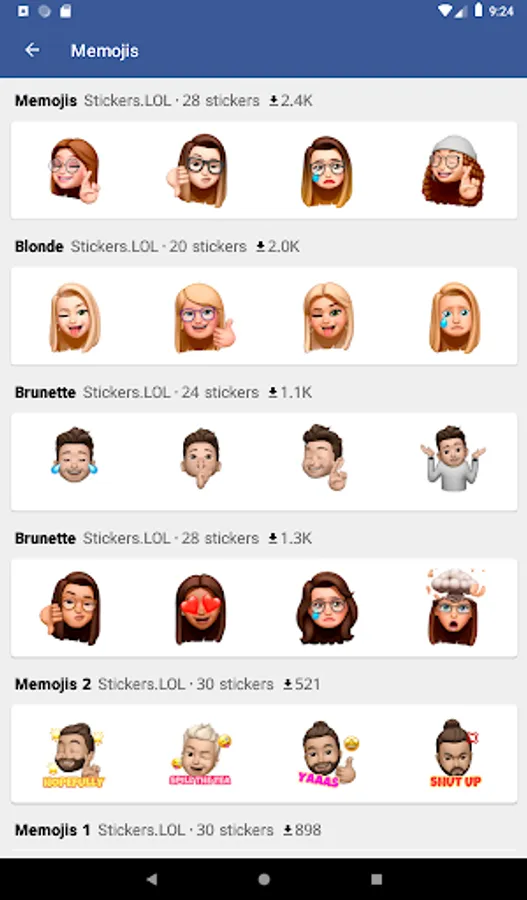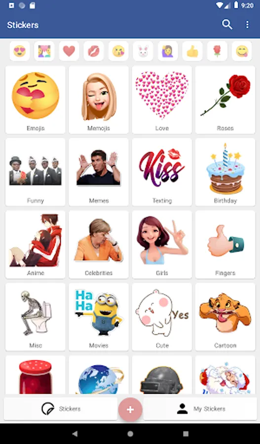 Try this Stickers app - Sticker Maker for WhatApp - including more than 50,000 sticker packs and thousands of video status! TV Shows & Movies, Celebrities & Models, Animals, Sports, Anime, Funny memes, Beautiful illustrations & Graphics, Lyrics, Quotes, Typo, Emojis and so on!