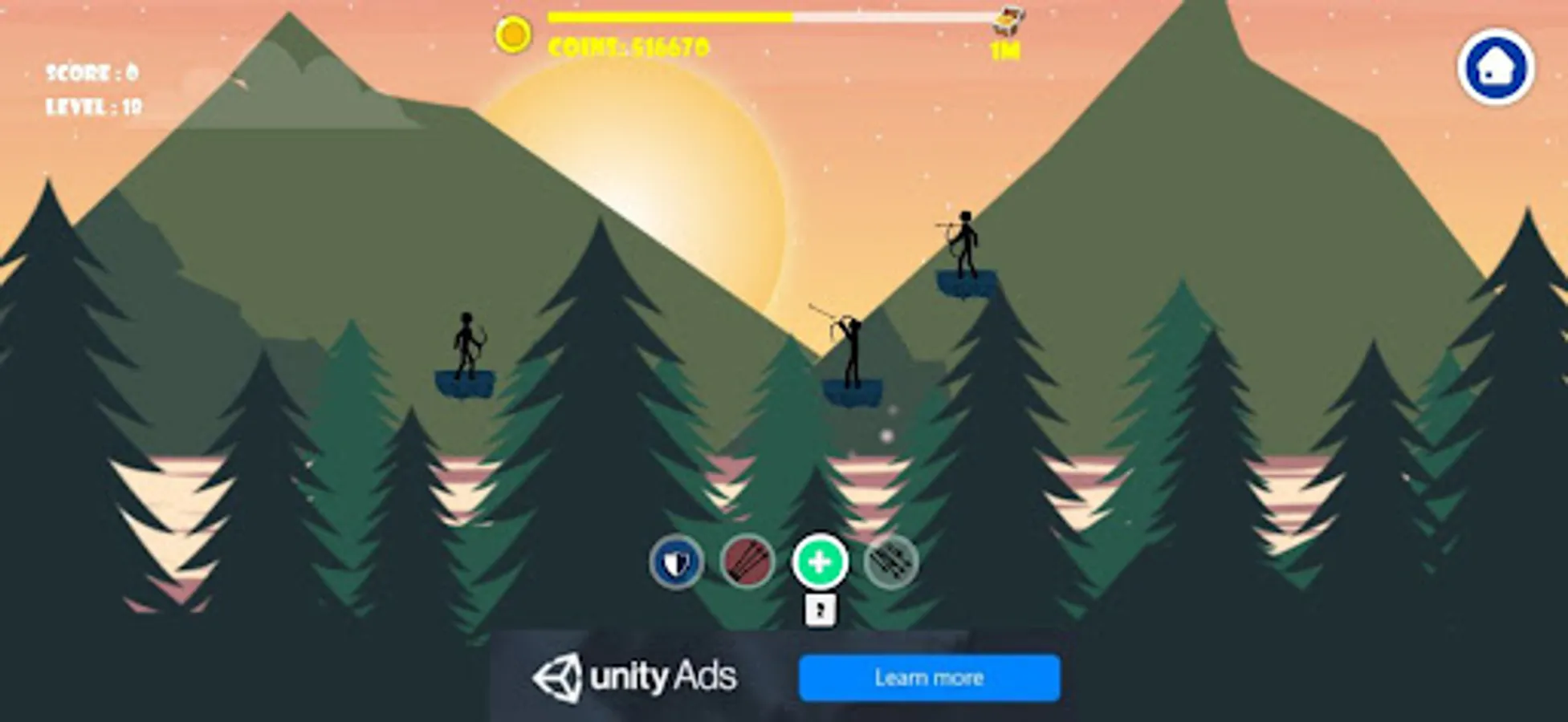 The game is about stickmen archers, little men shoot arrows at each other, the game has 1000 levels and a lot of bosses, character leveling is provided.