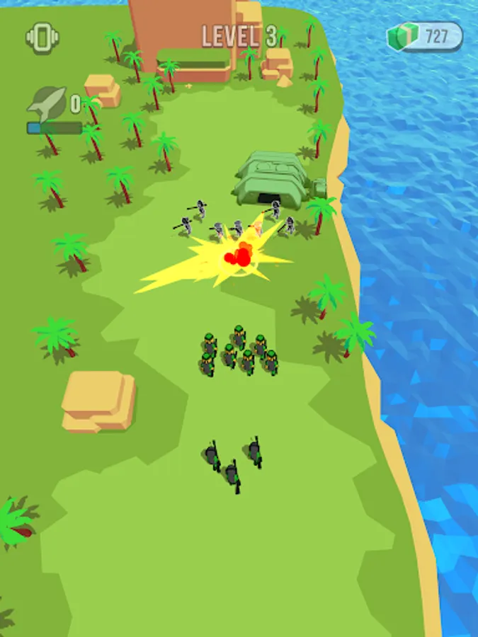 The main goal of the game is to beat all the enemies by combining your vehicles or soldiers. The enemies have good defense, epic forts, bridges and castles, so it will not be easy. Attack to capture the enemy bases!