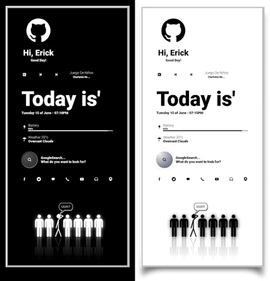 Si el widget no tiene el tamaño correcto, use la opcion en KWGT para aplicar el tamaño correctamente. Si quiere cambiar el color la mayoría tienen activado el cambio entre blanco y negro tocando la hora