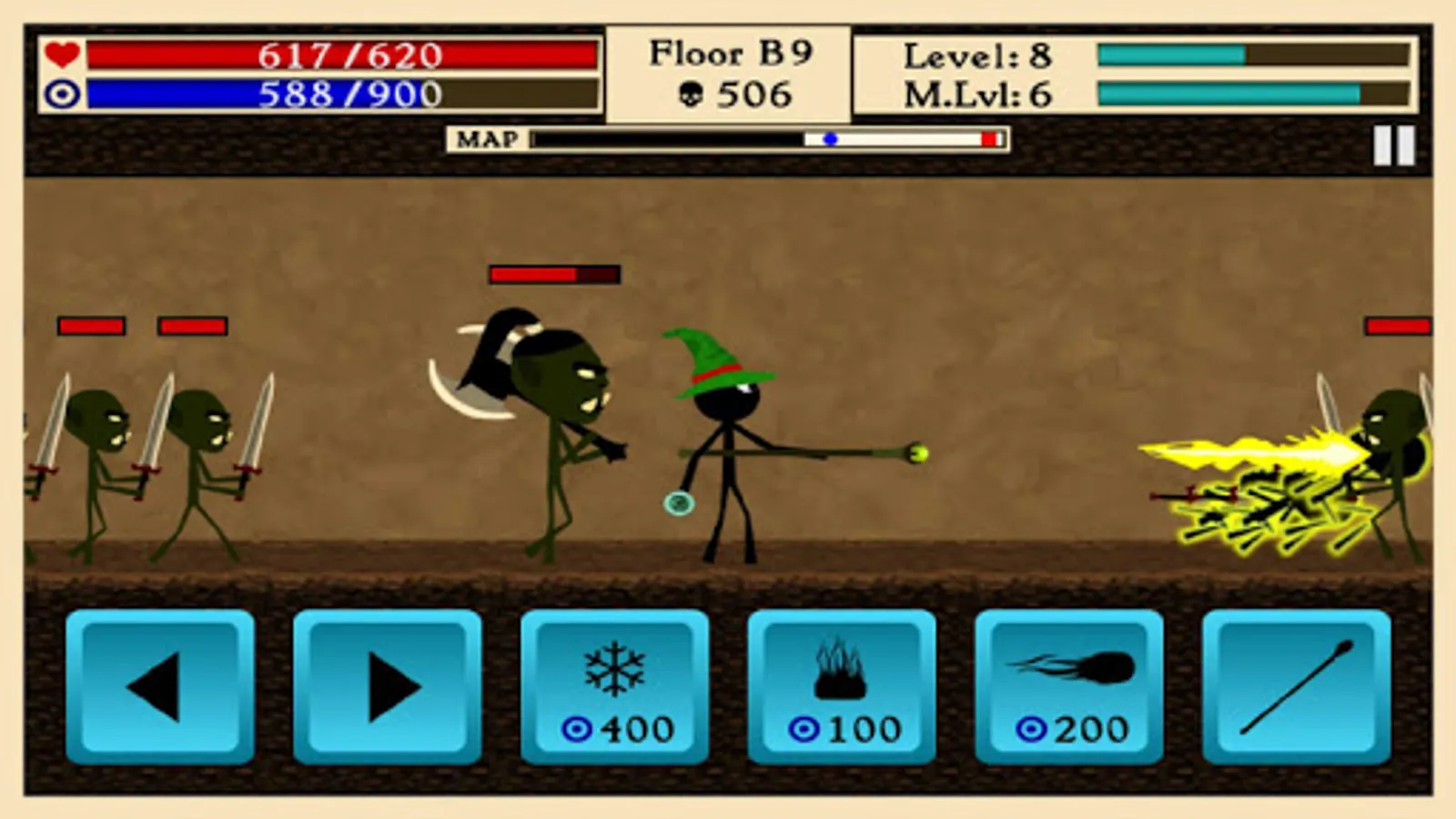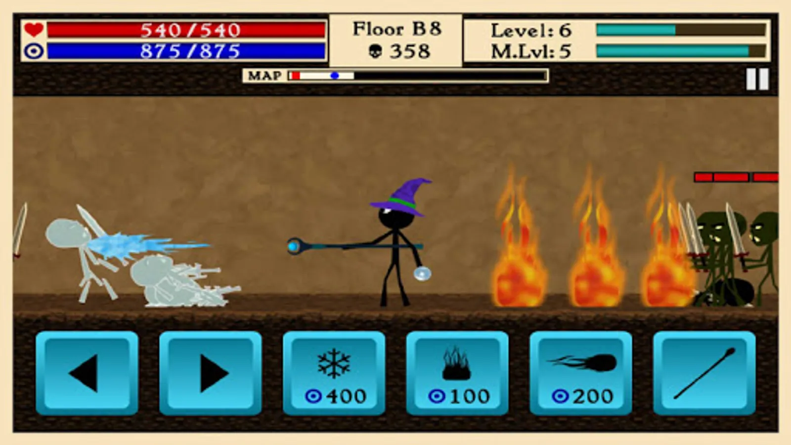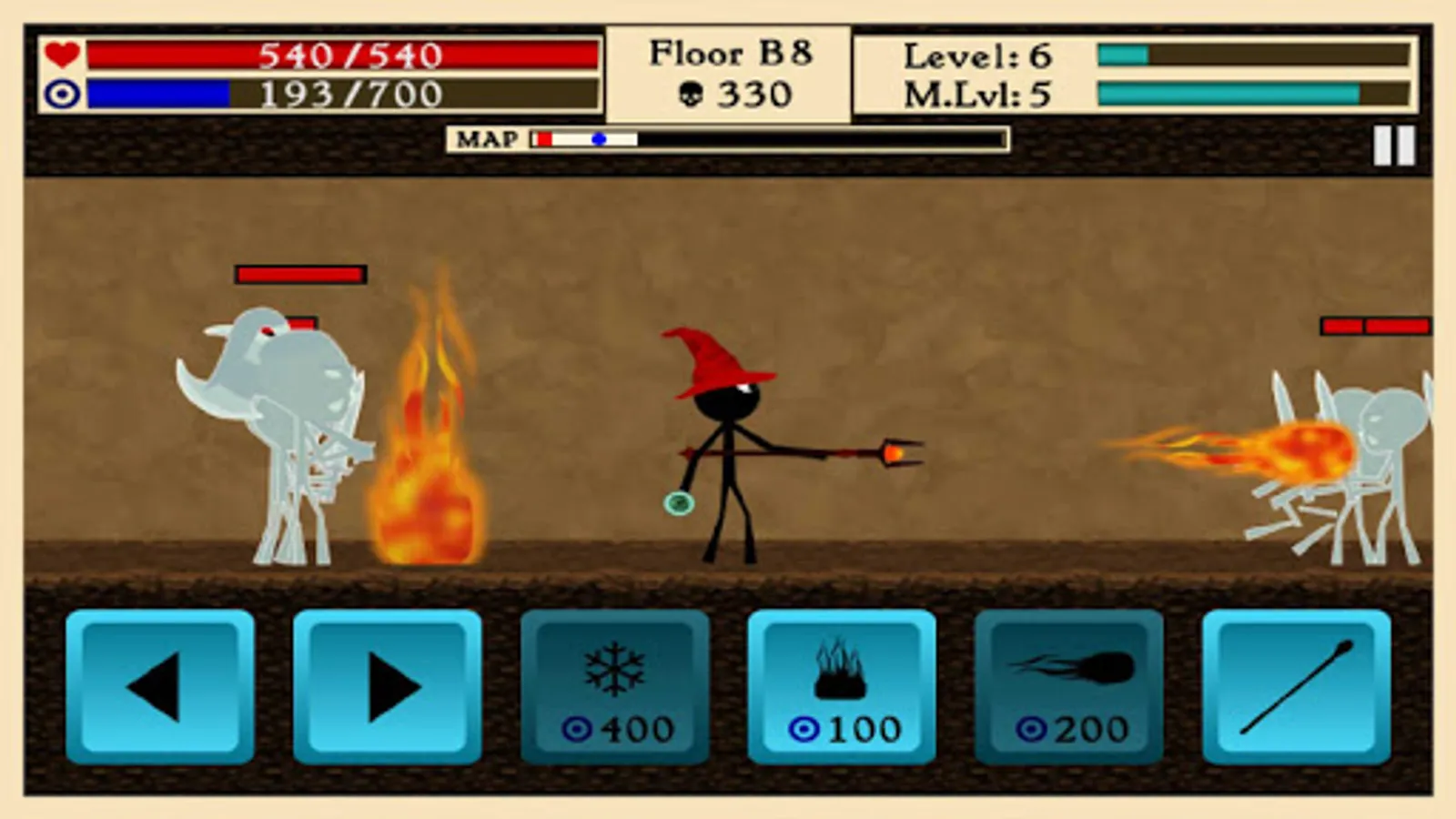 As your stick wizard level up, he will learn new magic spells that add new strategies to the gameplay.
