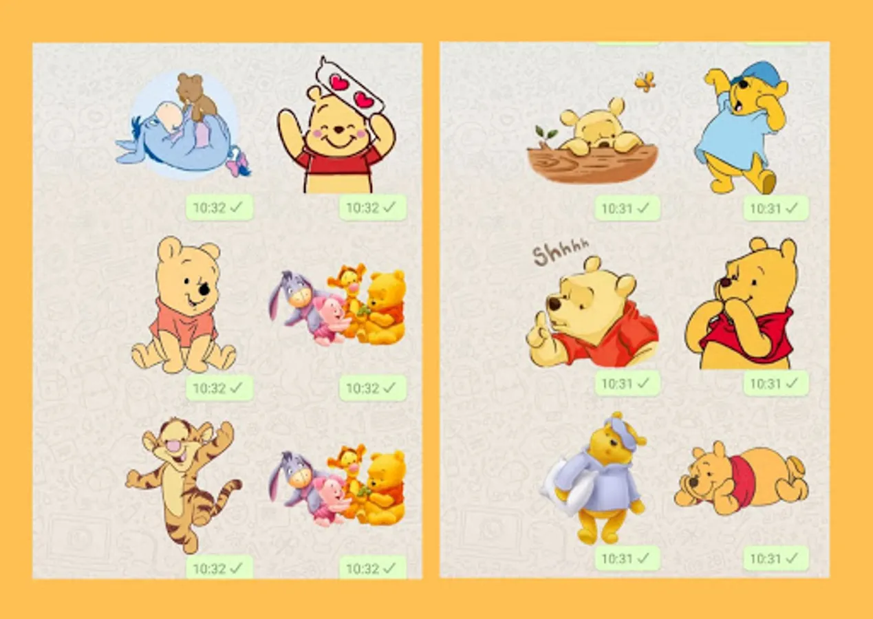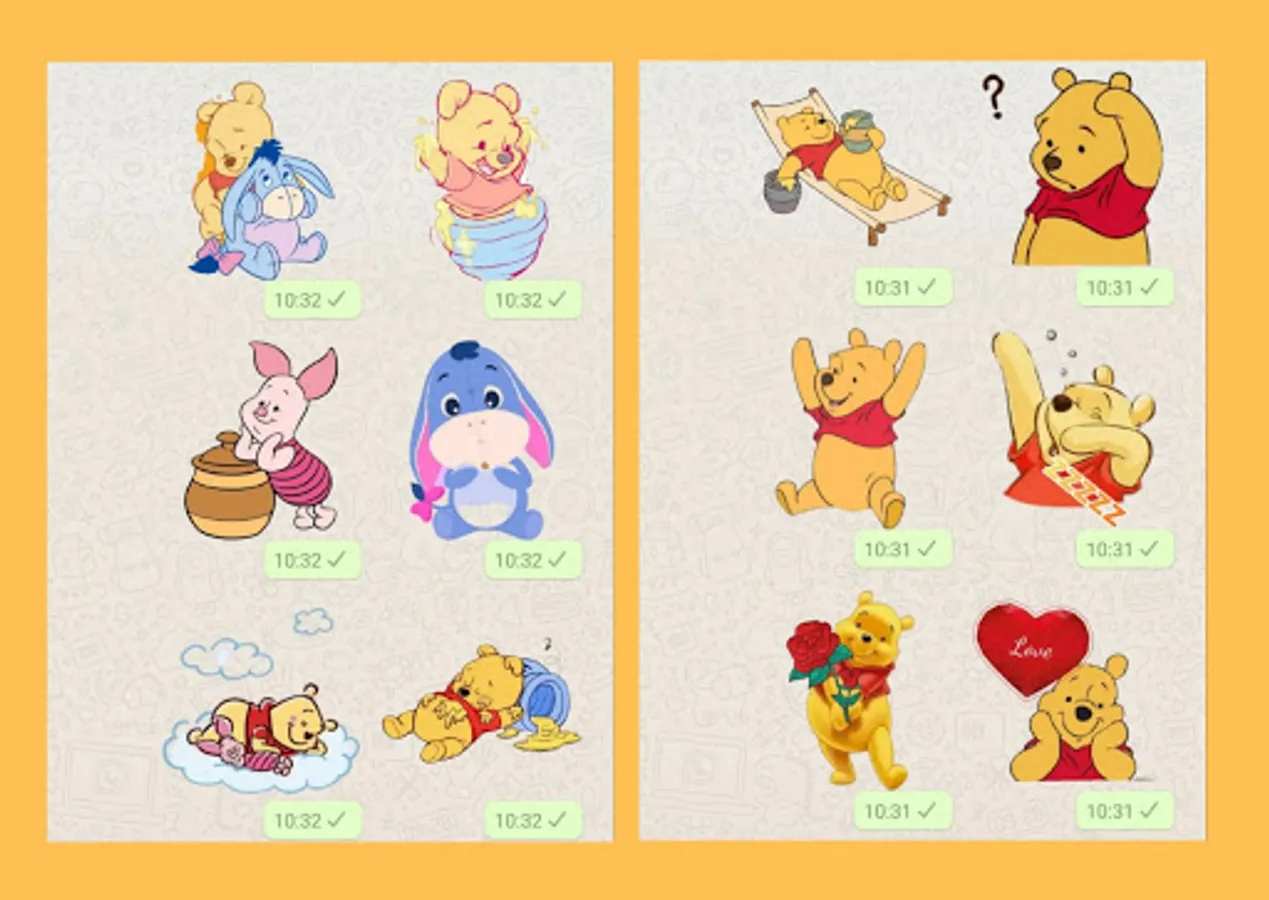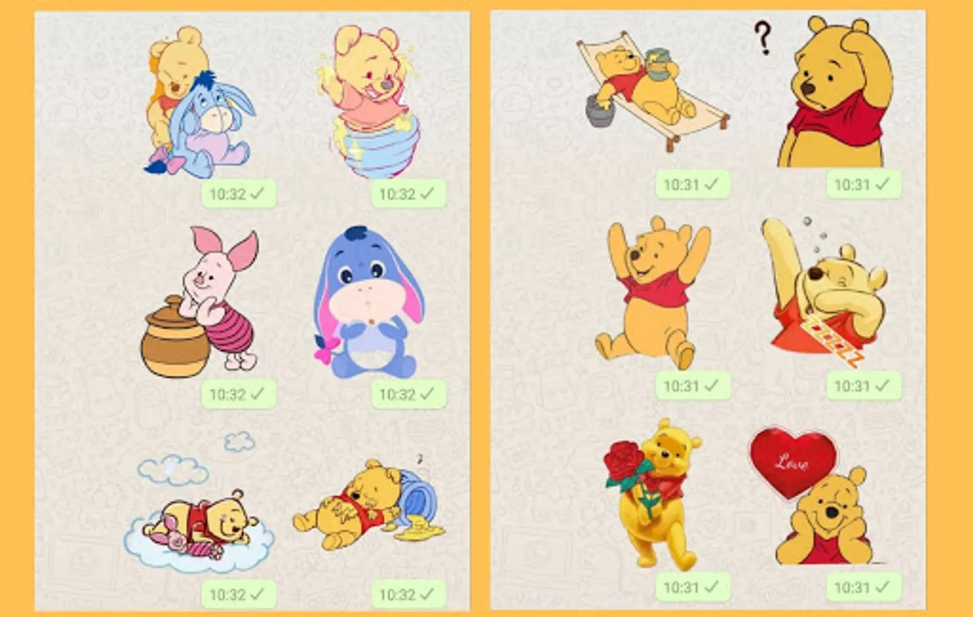 Cute and cute stickers of the animated character winie pho for your whatsap