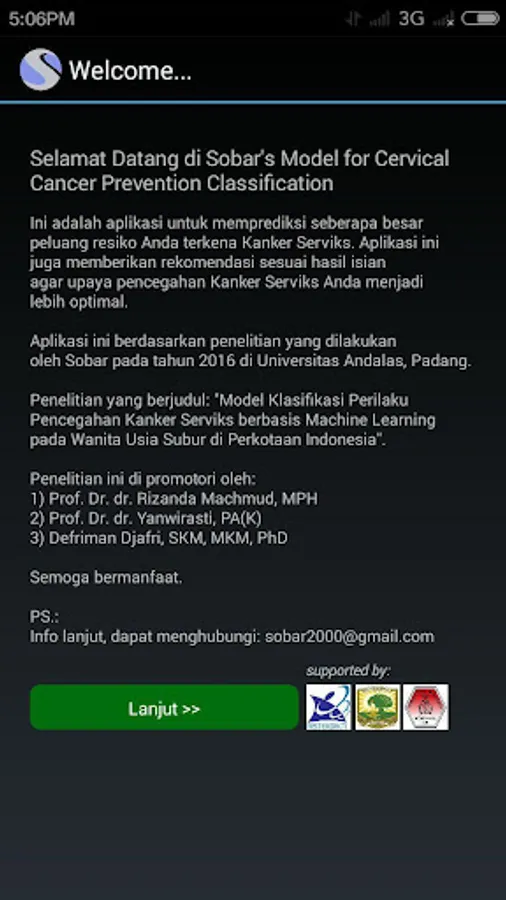 This application is based on research conducted by Sobar 2016 at Andalas University, Padang.