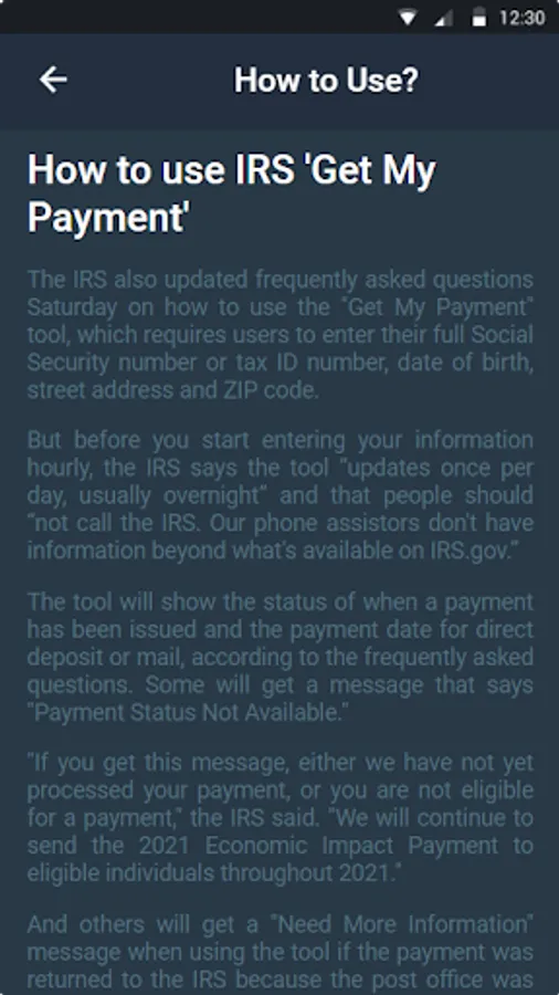 The IRS also updated frequently asked questions Saturday on how to use the "Get My Payment" tool, which requires users to enter their full Social Security number.
