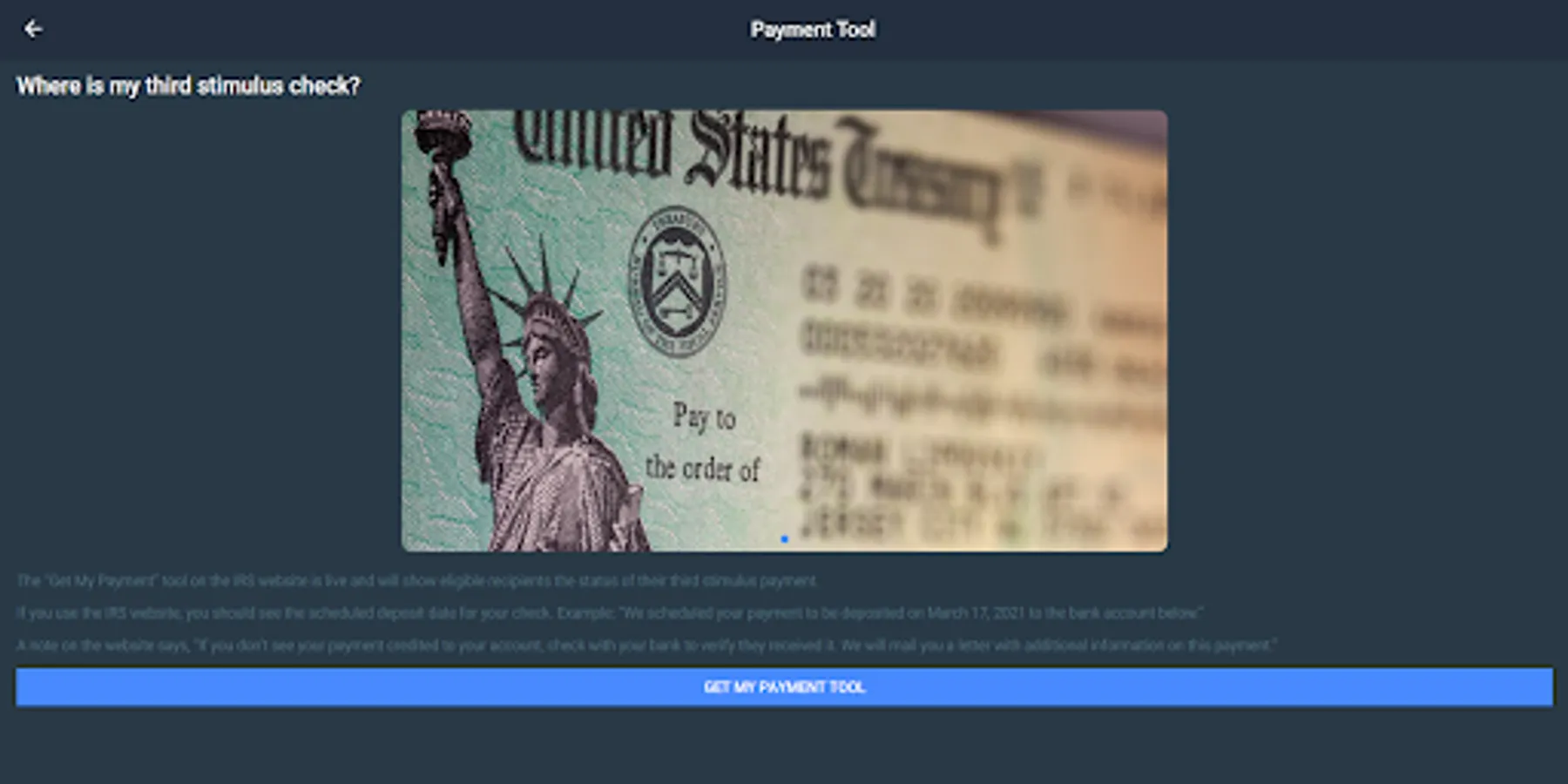 The IRS updated the "Get My Payment" tool on its website with information on the third round of stimulus checks Saturday, agency spokesperson Karen Connelly confirmed.