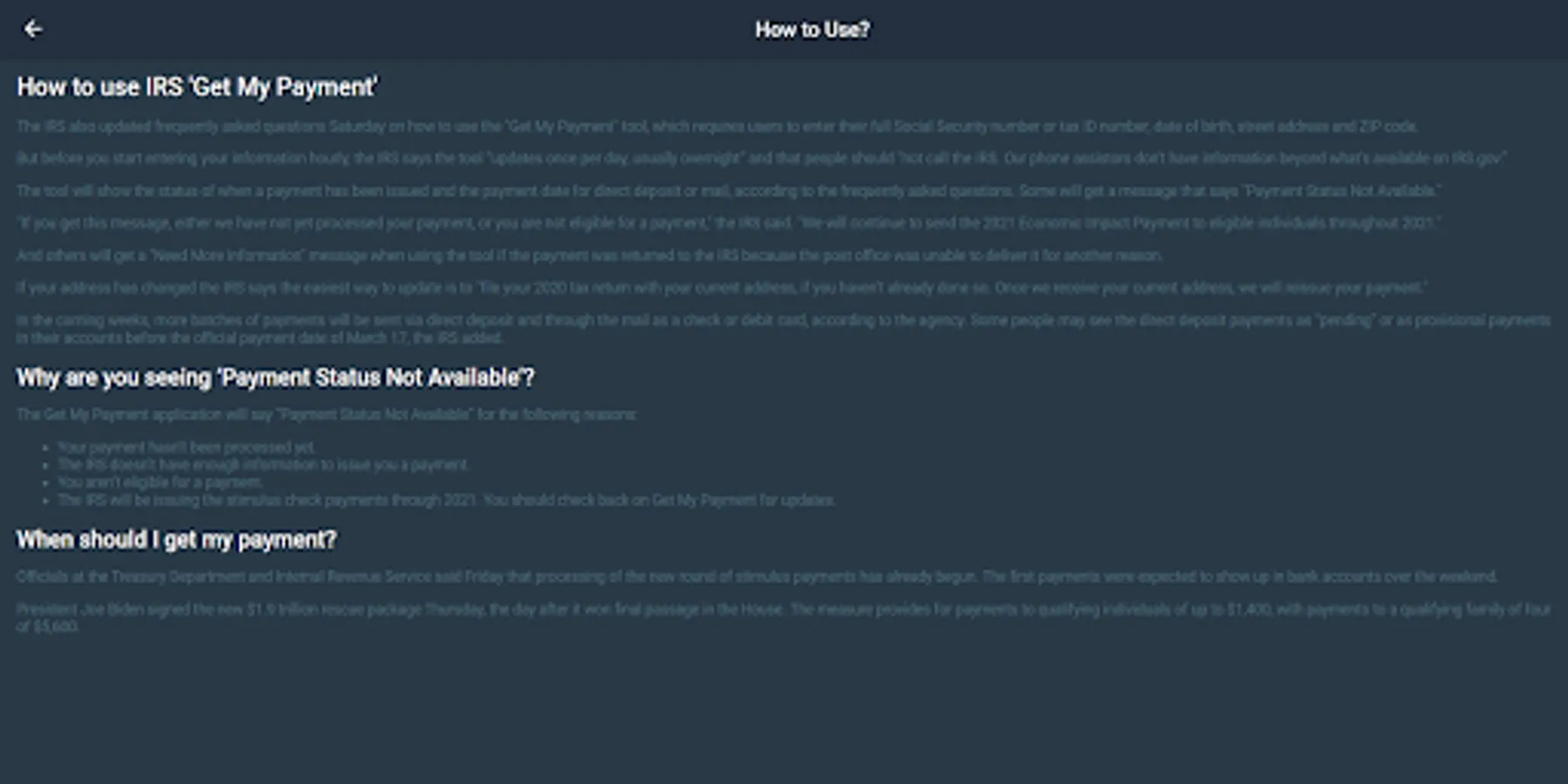 The tool will show the status of when a payment has been issued and the payment date for direct deposit or mail, according to the frequently asked questions. Some will get a message that says "Payment Status Not Available."