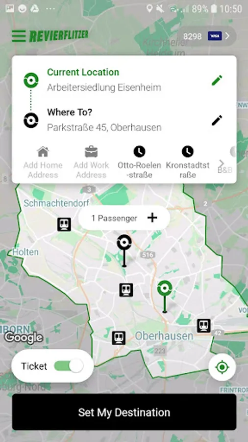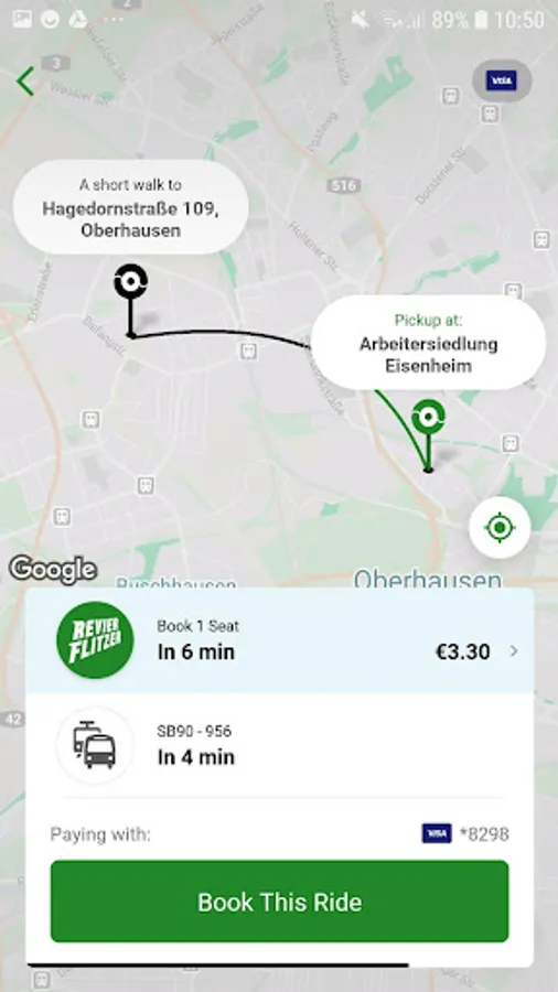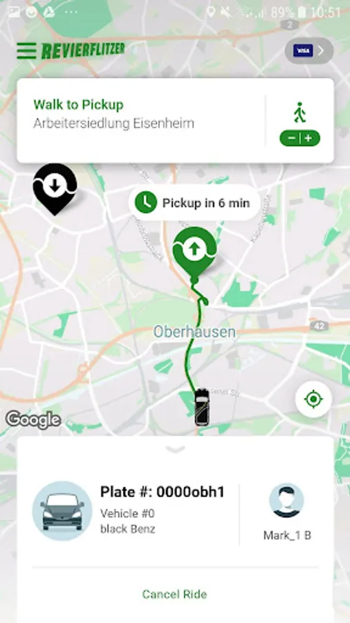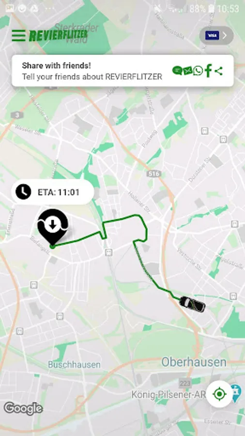 Be picked up from a REVIERFLITZER and transported to your destination (you can see your REVIERFLITZER and route in the app).