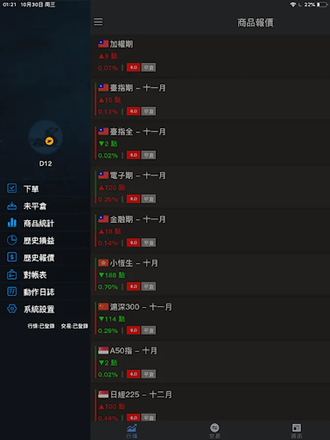 用戶可以在線即時觀看到指數報價行情及各類指標數據。