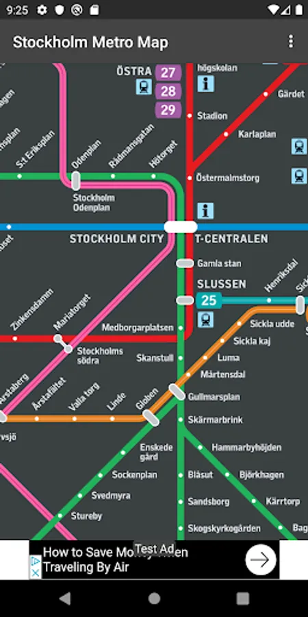 The Stockholm metro map, no bells, whistles, or other complications. From the official SL, you can zoom the subway map in, zoom it out, and that's all. Very simple and easy to use! Opens to the Stockholm map immediately so you can quickly decide if you need to hop on the train in front of you or wait for the next one. The app size is minimal for a quick download regardless of network speed.