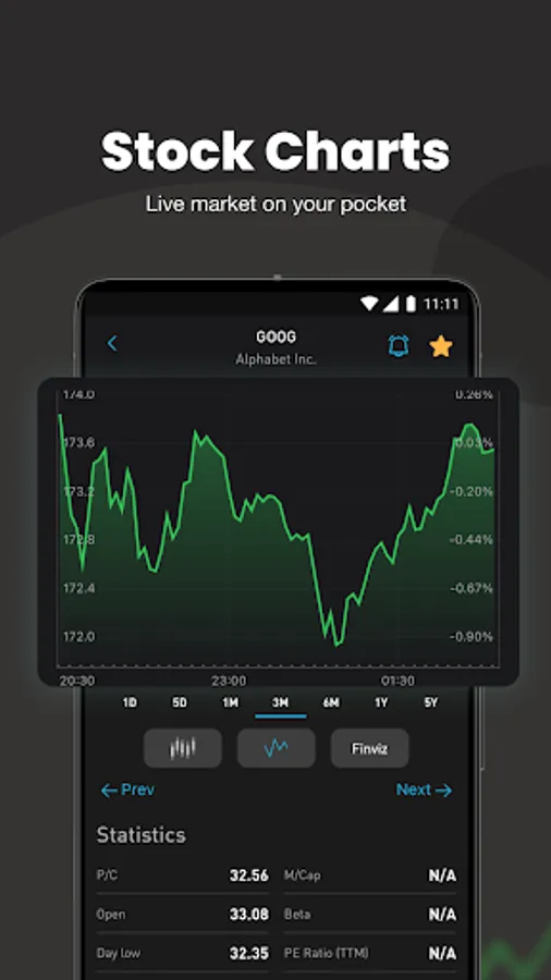 Amazing technical analysis, from line charts, candlesticks to bar charts with different time frames (1D, 5D, 1M, 3M, 6M, 1Y, 5Y) to help you inspect market trends. More than 100 technical indicators such as ADL, ADX, ATR, and MACD, combined with 100+ technical overlays include SMA, EMA, Bollinger Bands,... Examining these closely will help you manage NASDAQ stock investing more efficiently.