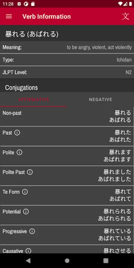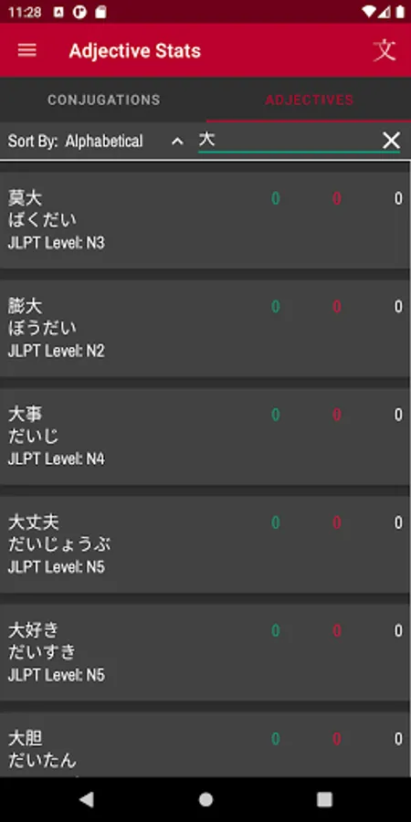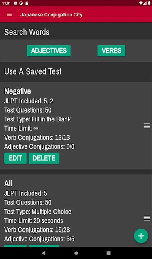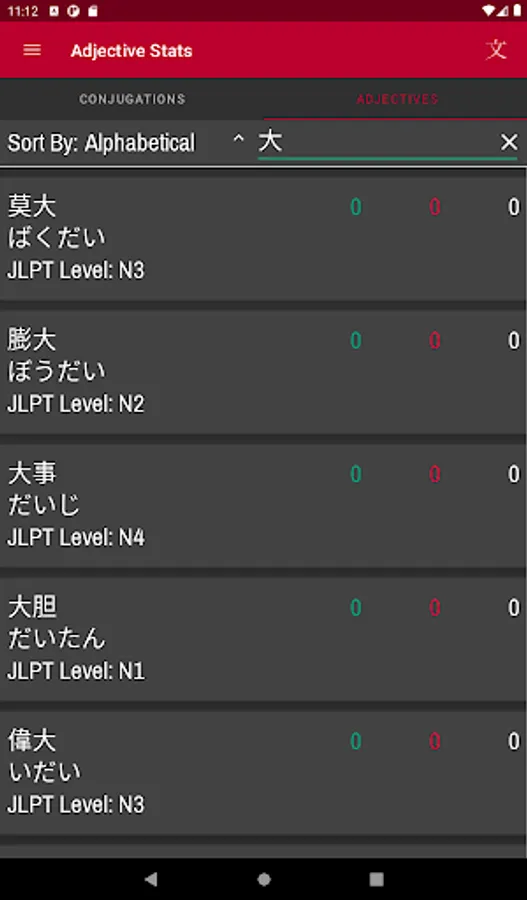-JLPT N5, N4, N3, N2, and N1 verbs and adjectives