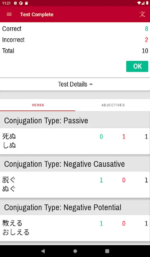 -Test your knowledge on verb and adjective conjugations with multiple choice or fill in the blank tests