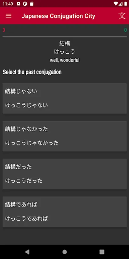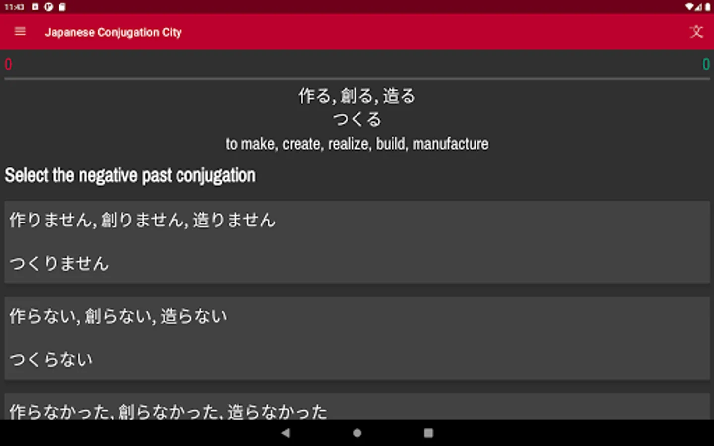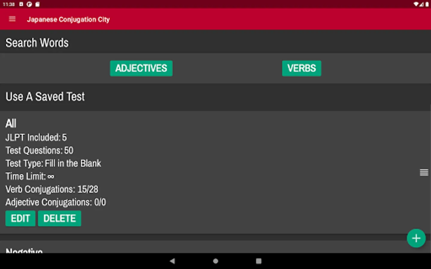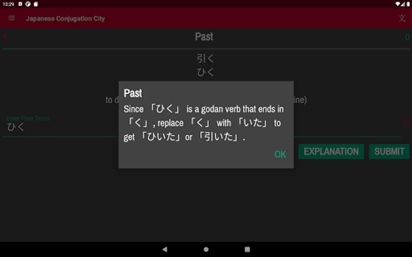 Japanese Conjugation City is an application that lets you create a test and practice close to 30 different verb conjugations and 4 different adjective conjugations. Each with their own respective lesson and examples in romaji or Japanese.