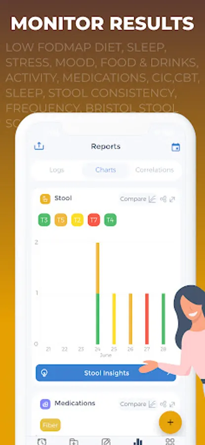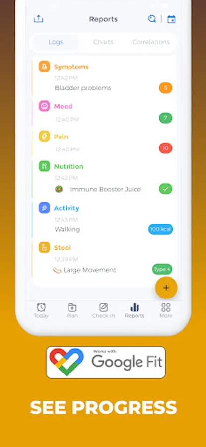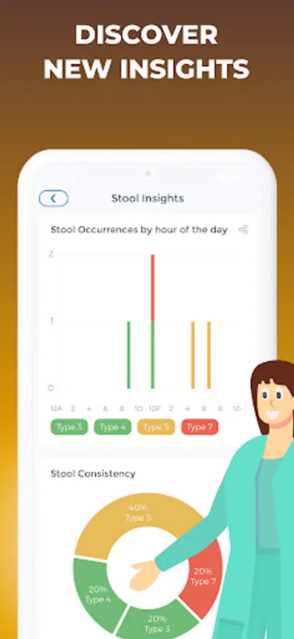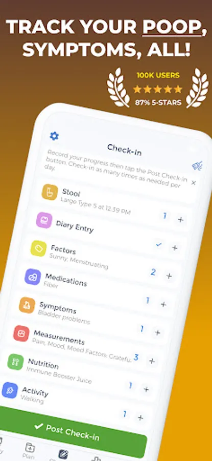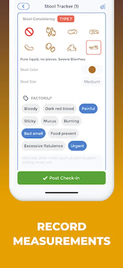 Log your complete details including factors such as Urgency, Blood, Pain, Color, Mucus