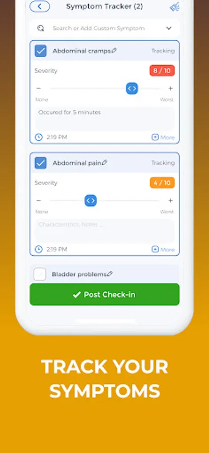 If needed enable the built-in symptom tracker, medication tracker, nutrition tracker, activity tracker and other trackers to record all aspects of your health!