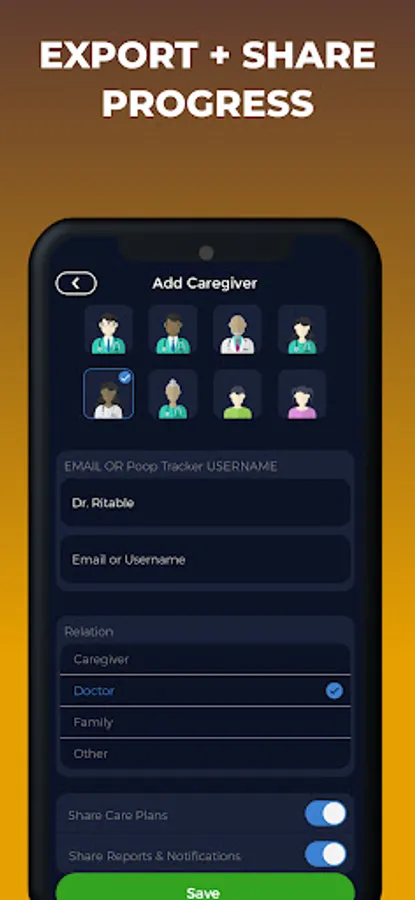 Share it digitally with a caregiver by adding them directly within the App or Export your logs to analyze elsewhere or print them