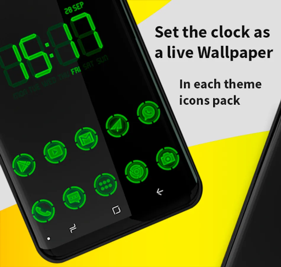 Digital clock Live wallpapers — You can set the digital clock as a Live Wallpaper even if the clock service is turned off. All themes for our app can be set as live Wallpaper.