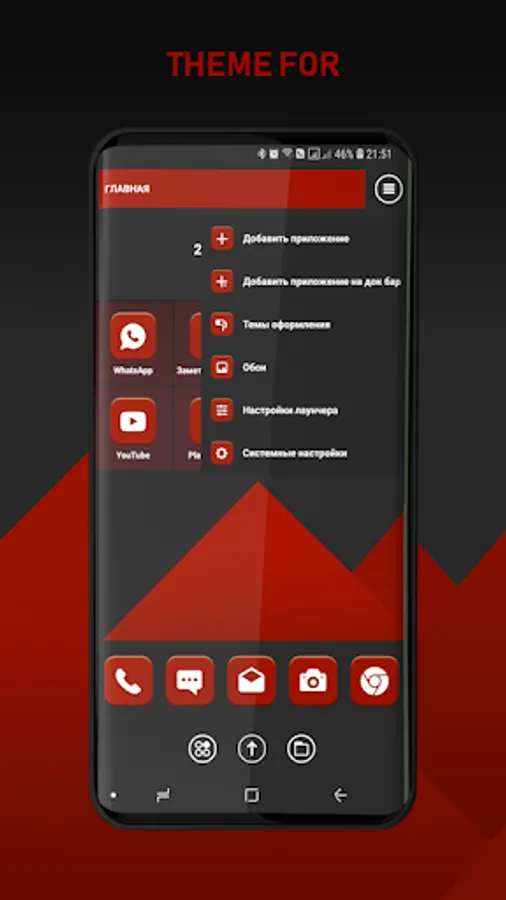 The theme contains icons pack for most popular launchers. List of launchers that support the use of icons pack: Apex launcher, Action launcher, AWD launcher, Evie launcher, Nova launcher, Smart launcher.