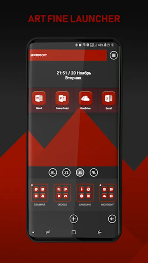 Attention! This theme can be used at "Art Fine Launcher" only. It will not work without this app.