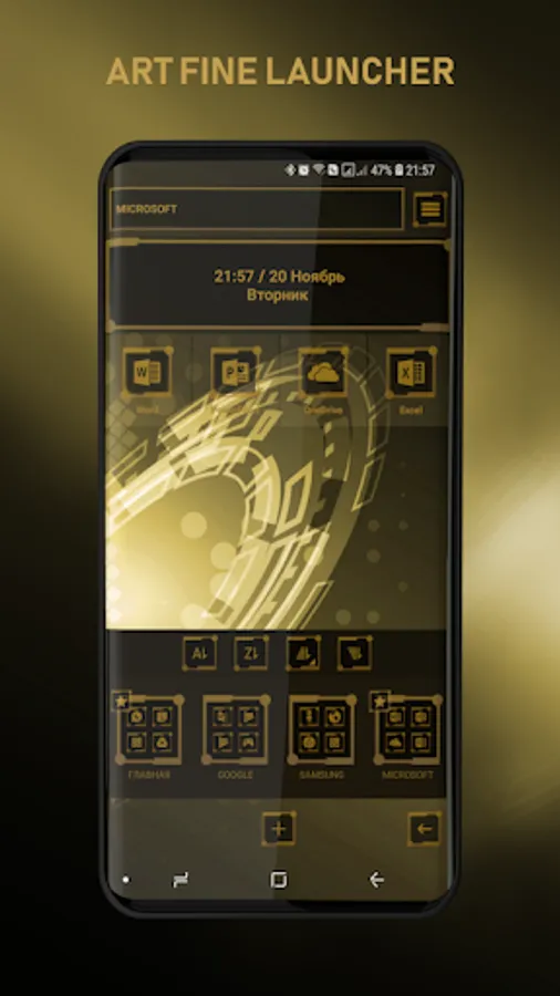Attention! This theme can be used at "Art Fine Launcher" only. It will not work without this app.
