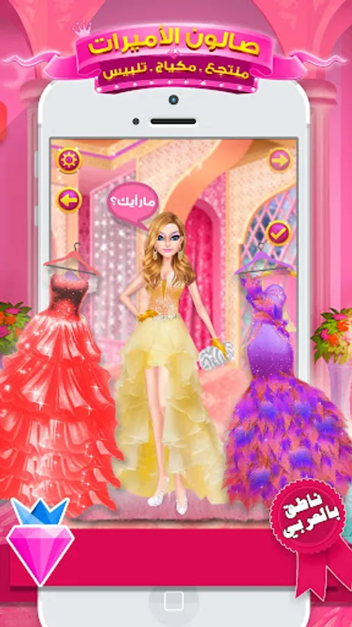Help the Cute Princess👸🏻, she need an adorable dress for their Prom show👗👠. This beauty salon games, have nail salon to take care of nails and hair salon, then a room where you have to makeup games and dress up. you are the fashion maker! Get best makeover games with hair makeup nails and dressing for FREE!👩🏻